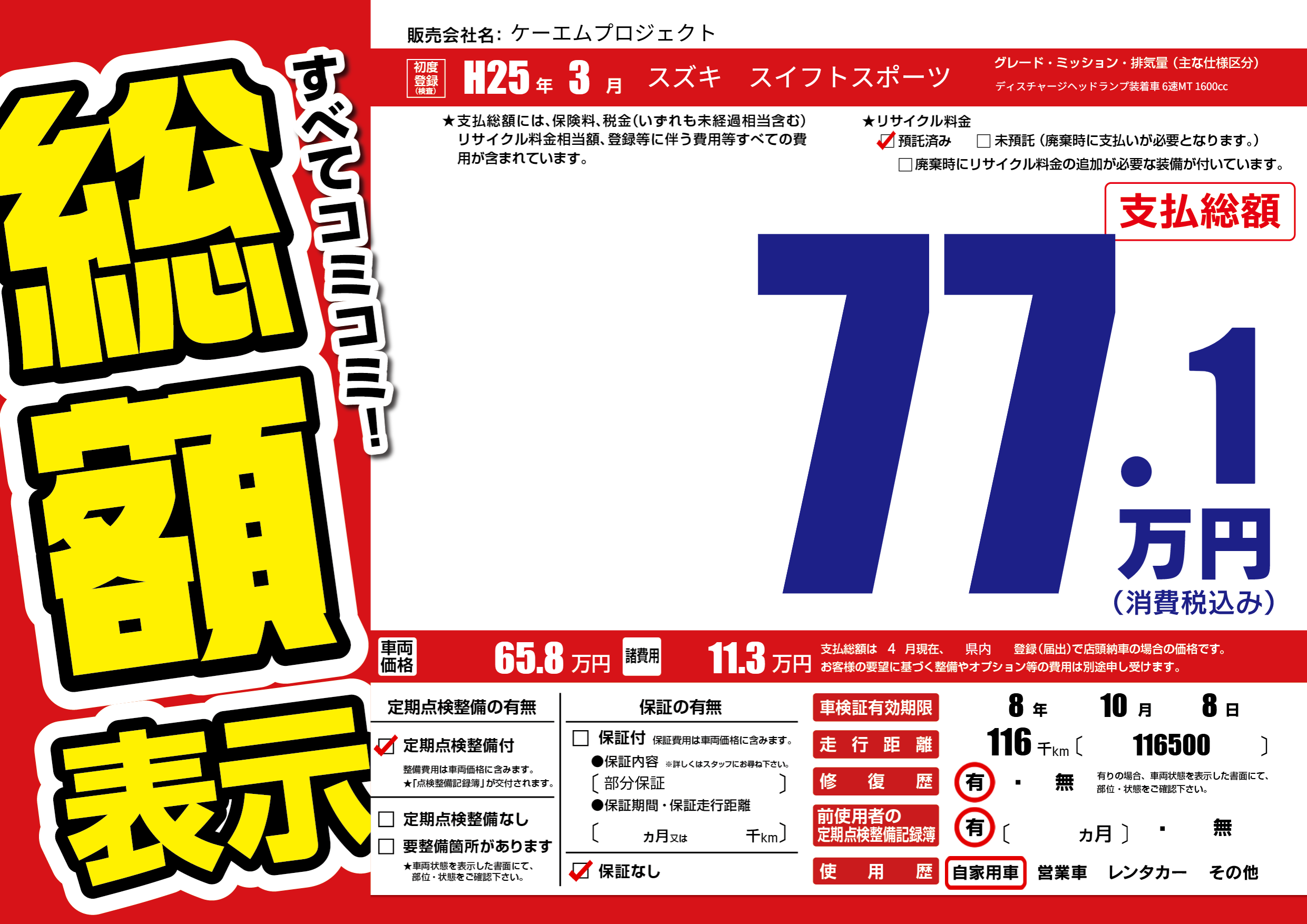なし | 車検制限 | 8年10月8月 |