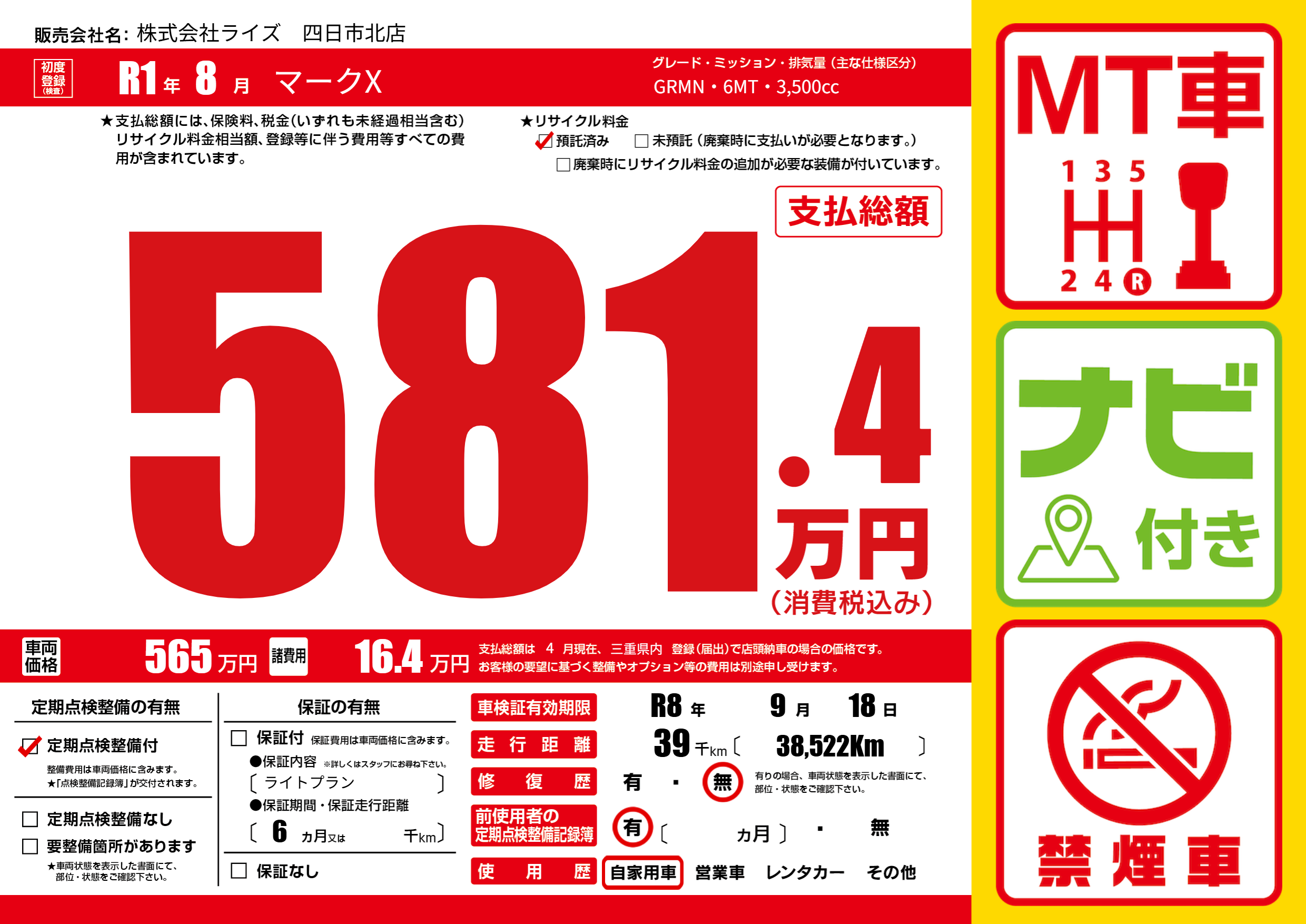 なし | 車検制限 | R8年9月18月 |