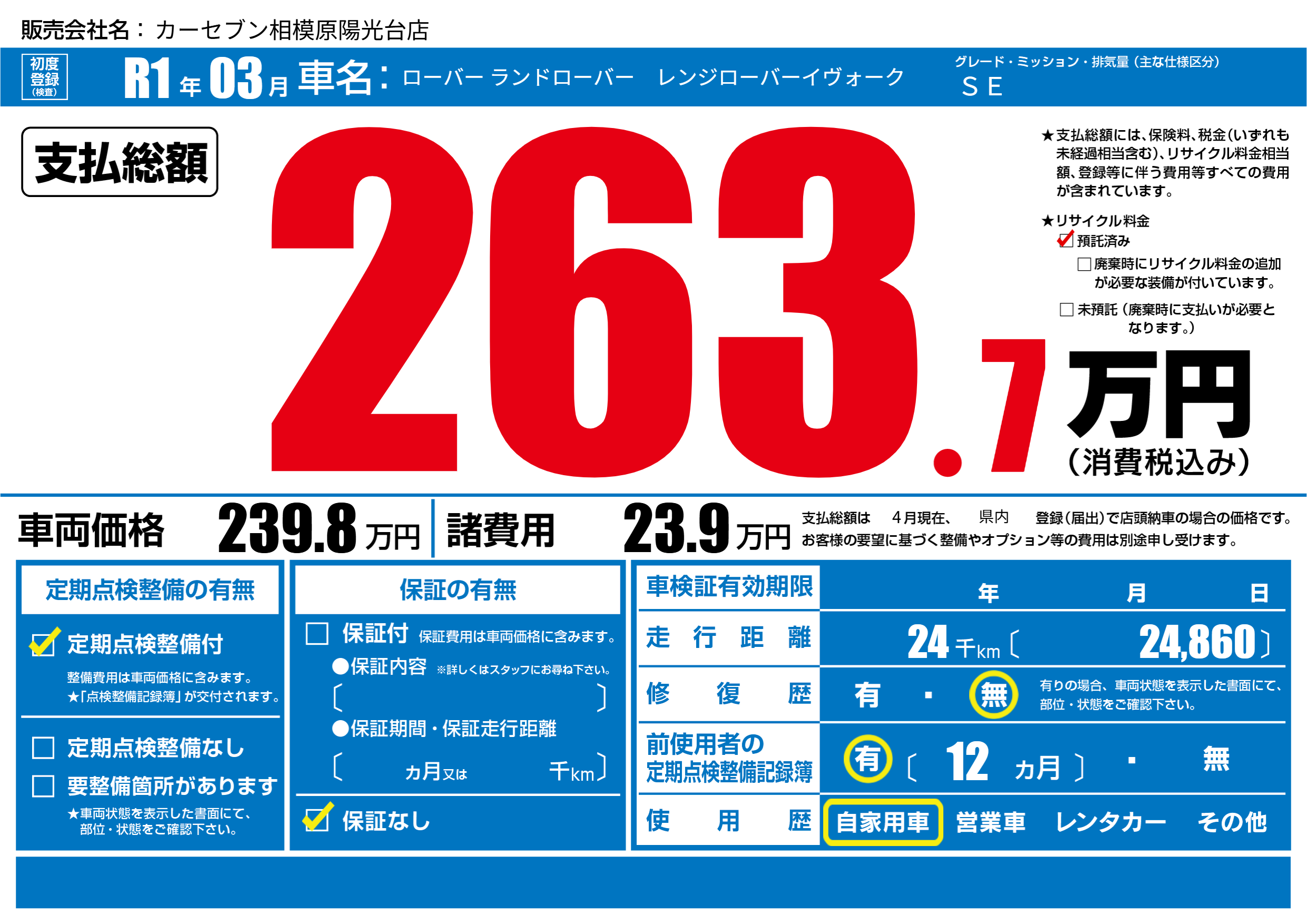 | リサイクル料金 預託済 |
