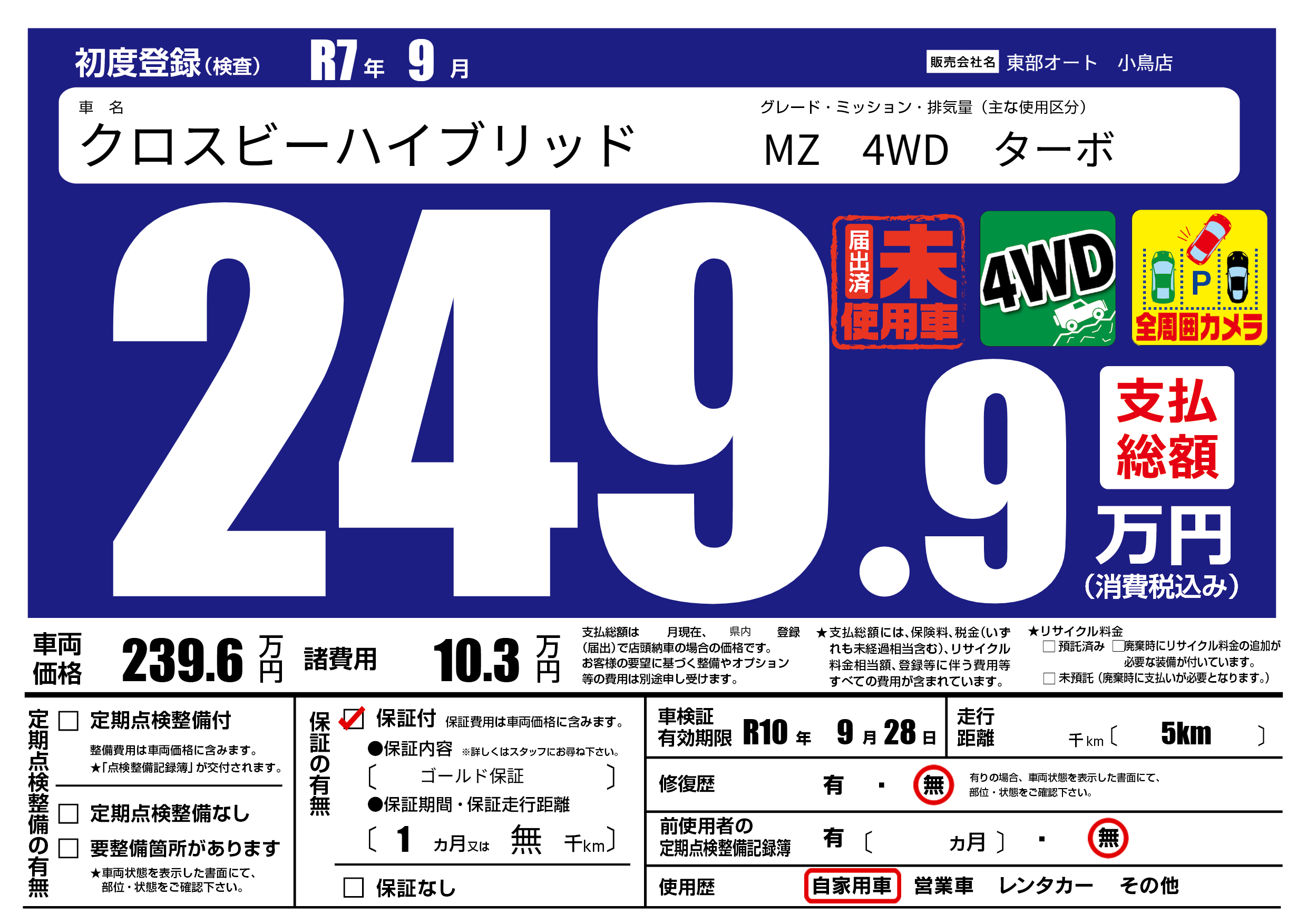 | 走行キロ | - | 初年度登録 | R7年9月 |