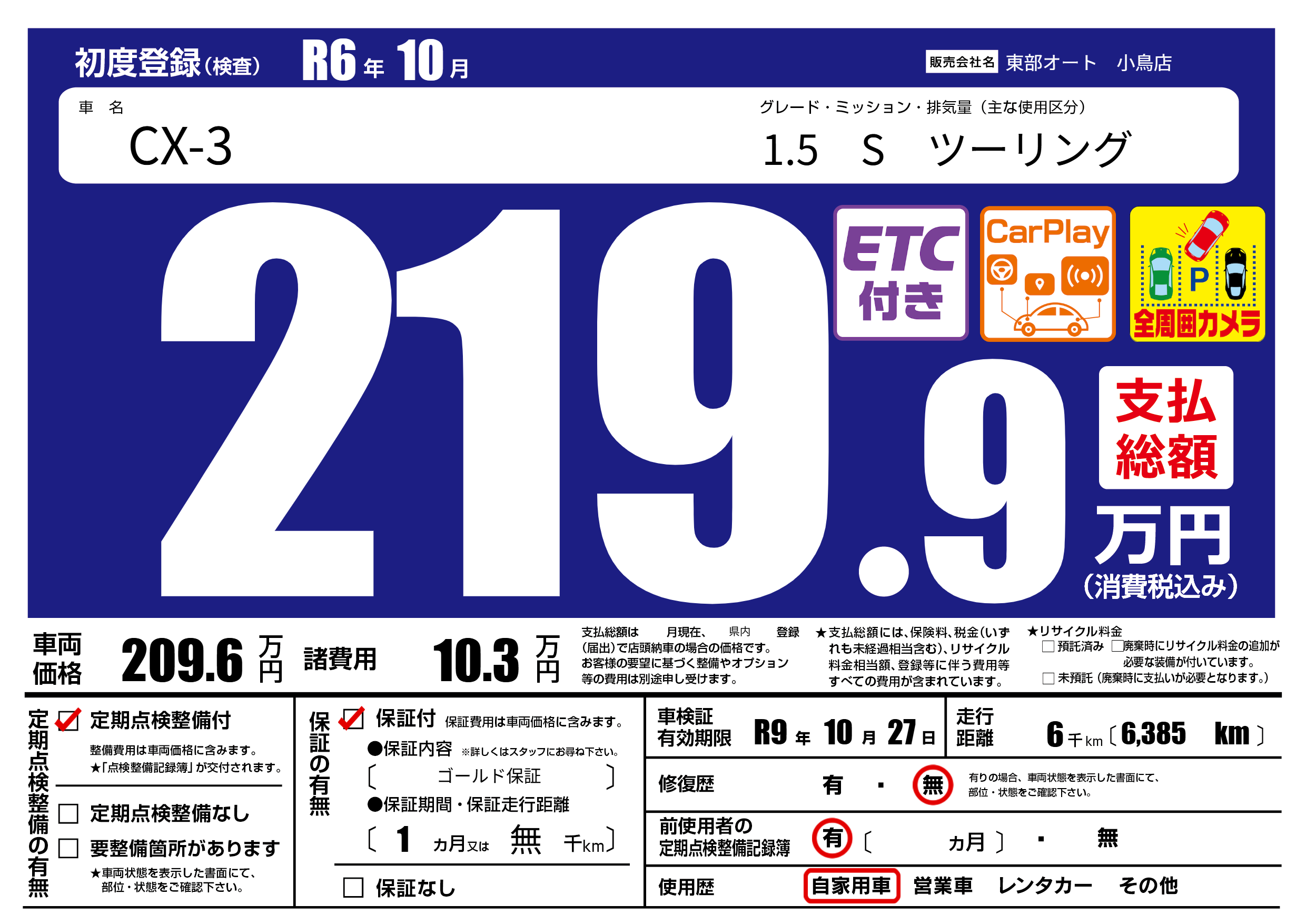 保証付き 保証内容( ゴールド保証) 1ヶ月または(無)千kmまで |