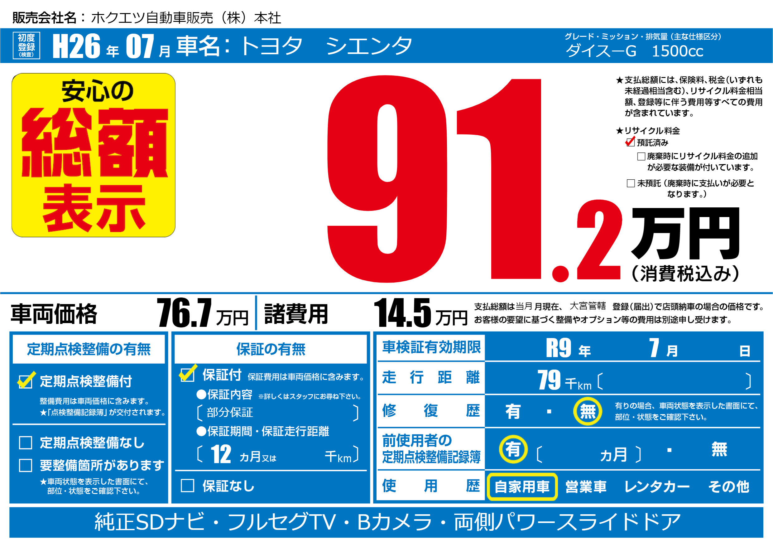 | 車検制限 | R9年 7月 - 日 | ||