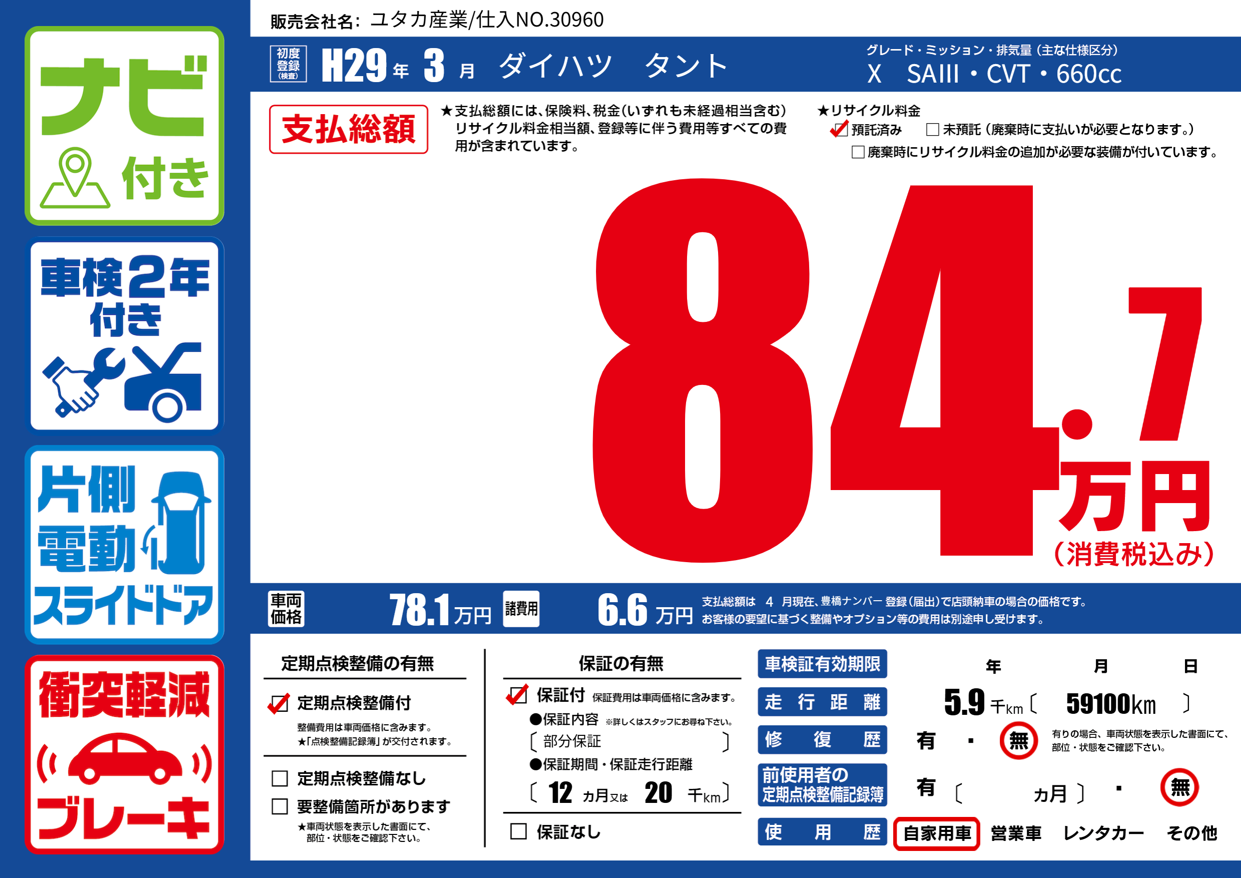 | 車検制限 | - 年 - 月 - 日 | ||