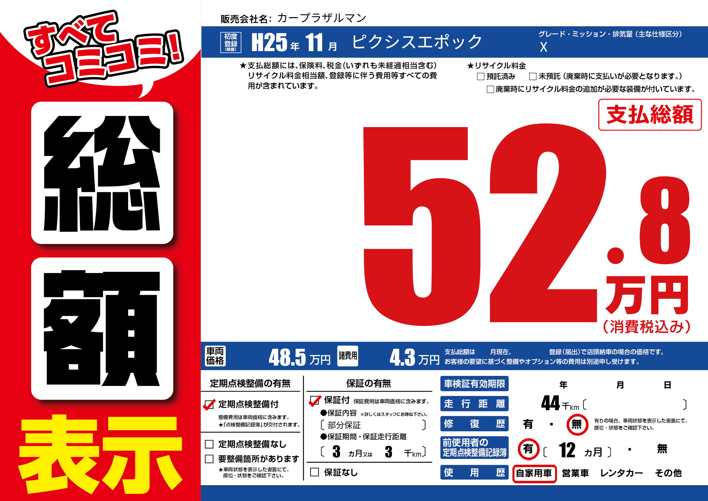 | 定期点検整備 | 定期点検整備あり | ||