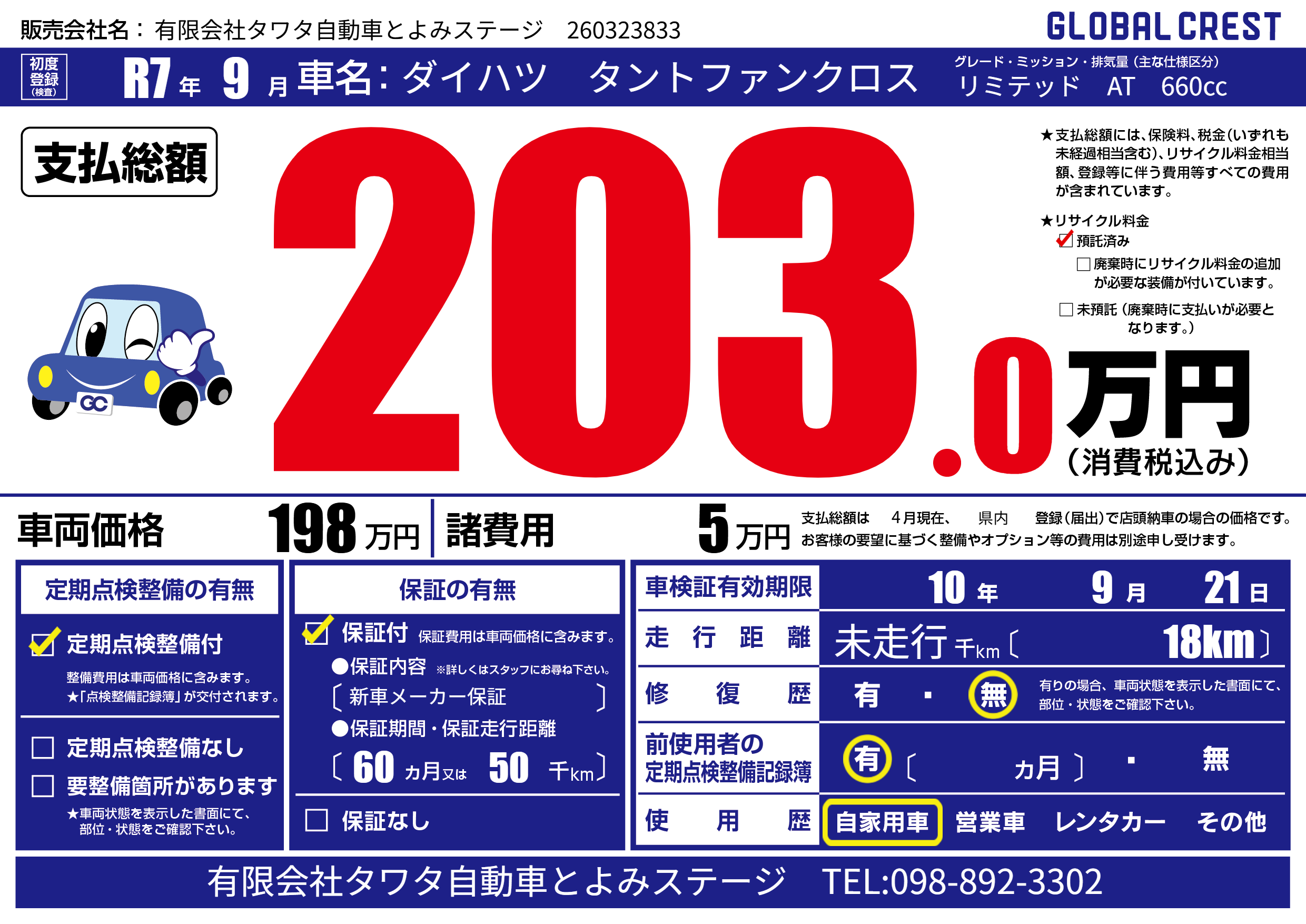| 車検制限 | 10年 9月 21日 | ||