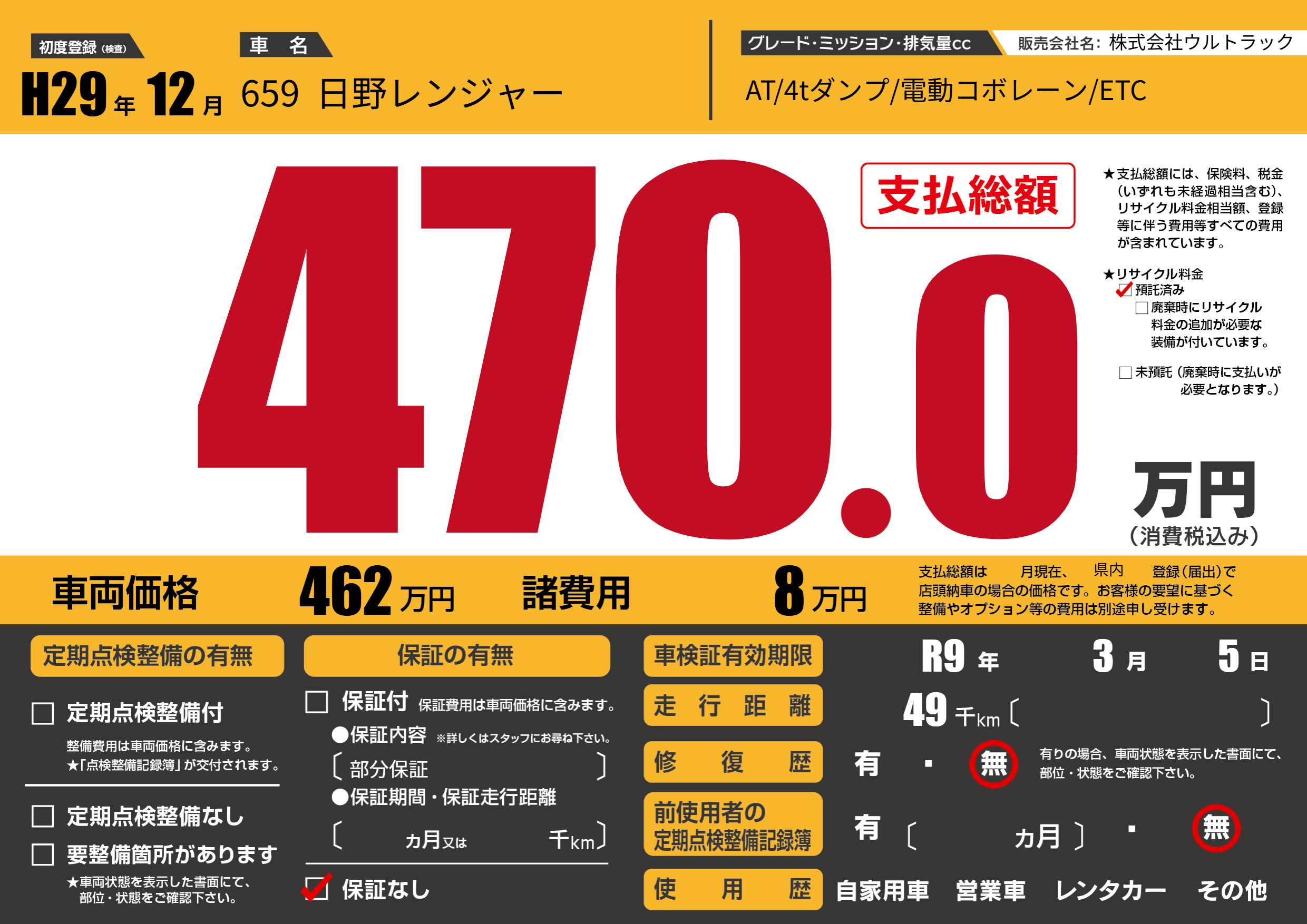 なし | 車検制限 | R9年3月5月 |