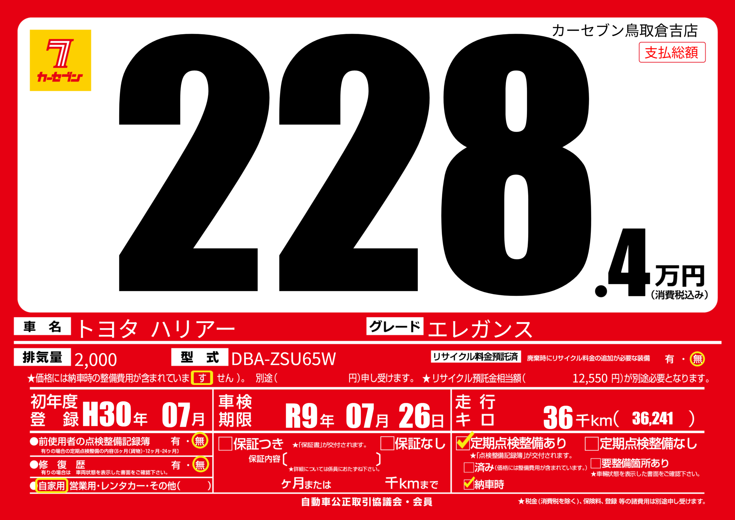 | 初年度登録 | H30年07月 | ||