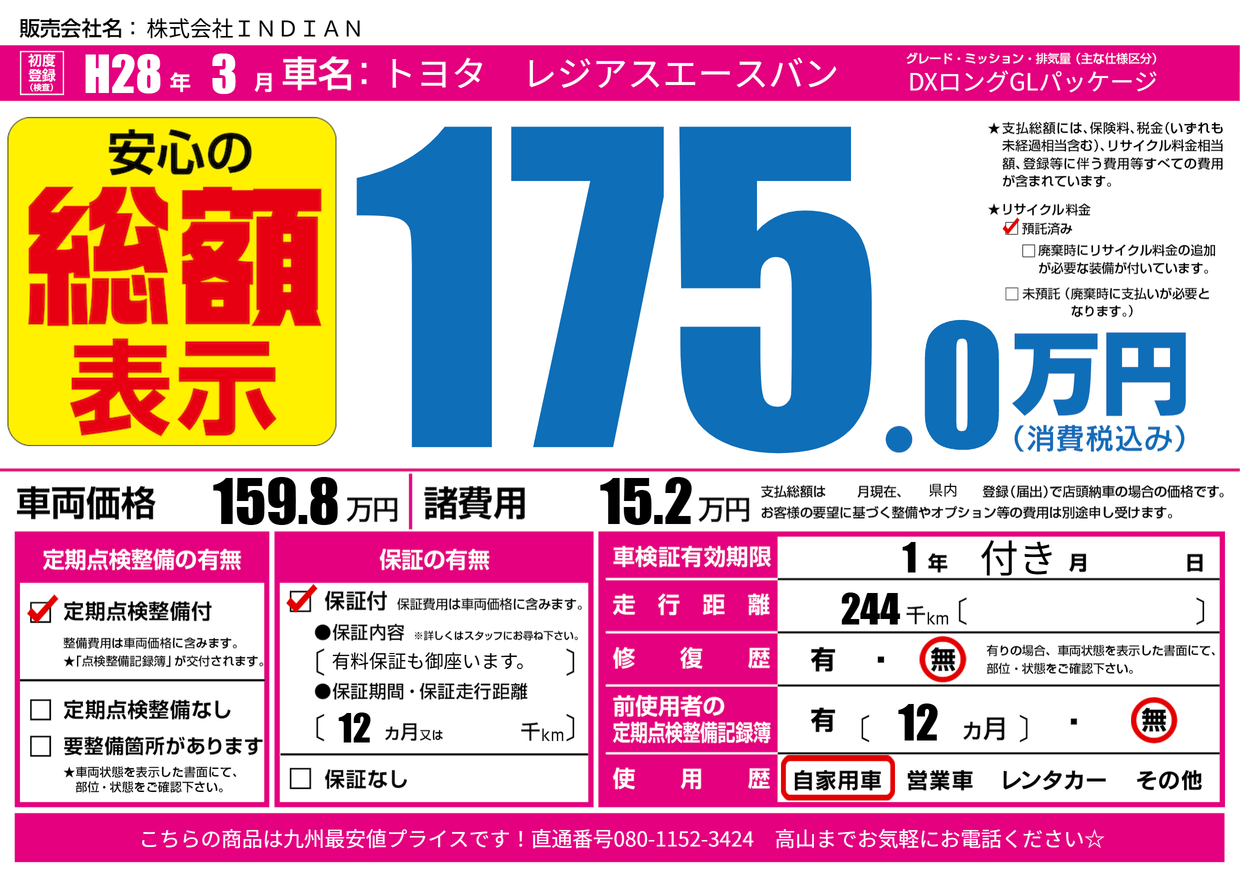 なし | 車検制限 | 1年付き月---月 |