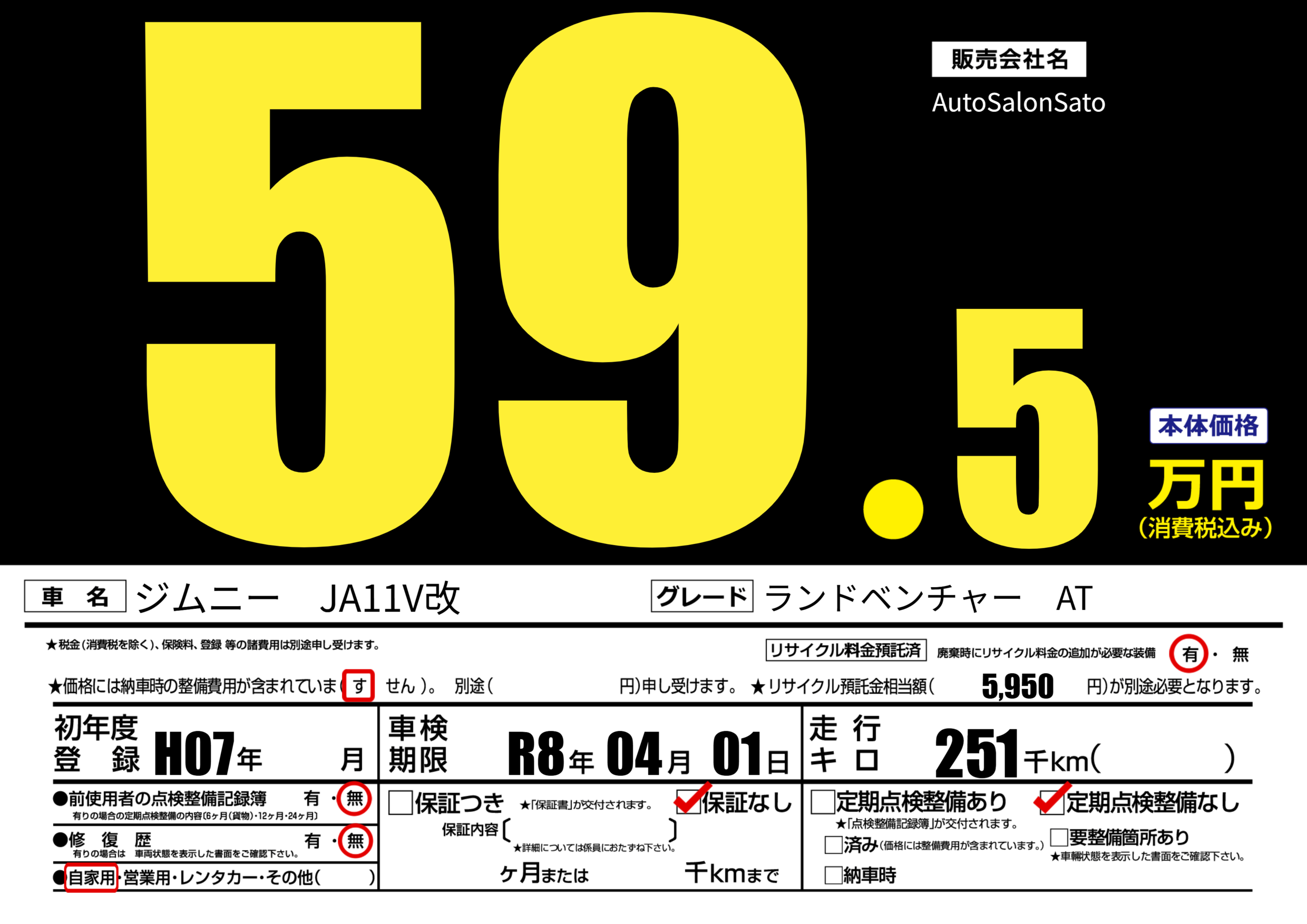 あり | 車検制限 | R8年04月01月 |