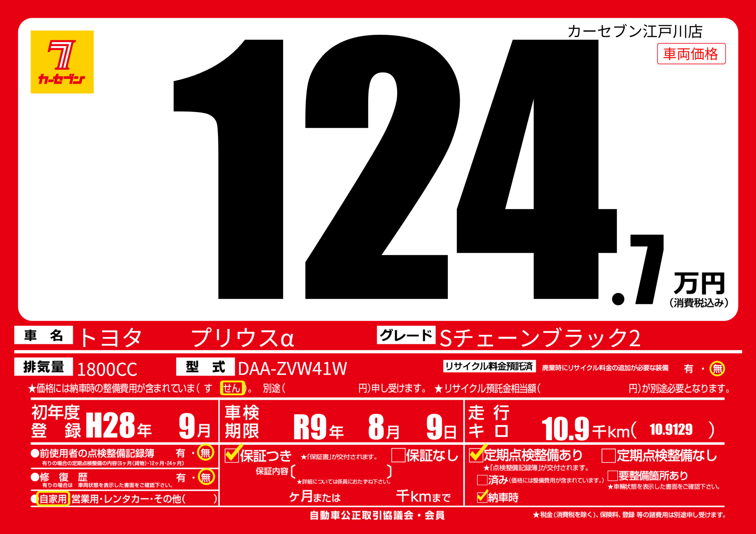なし | 車検制限 | R9年8月9月 |