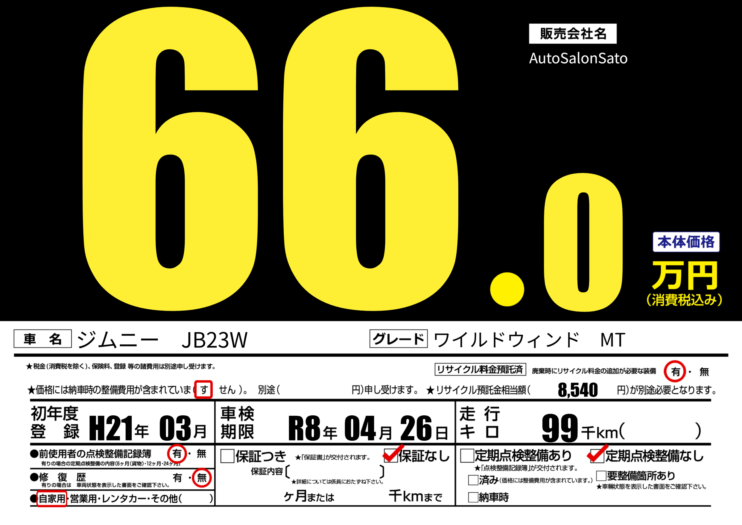 あり | 車検制限 | R8年04月26月 |