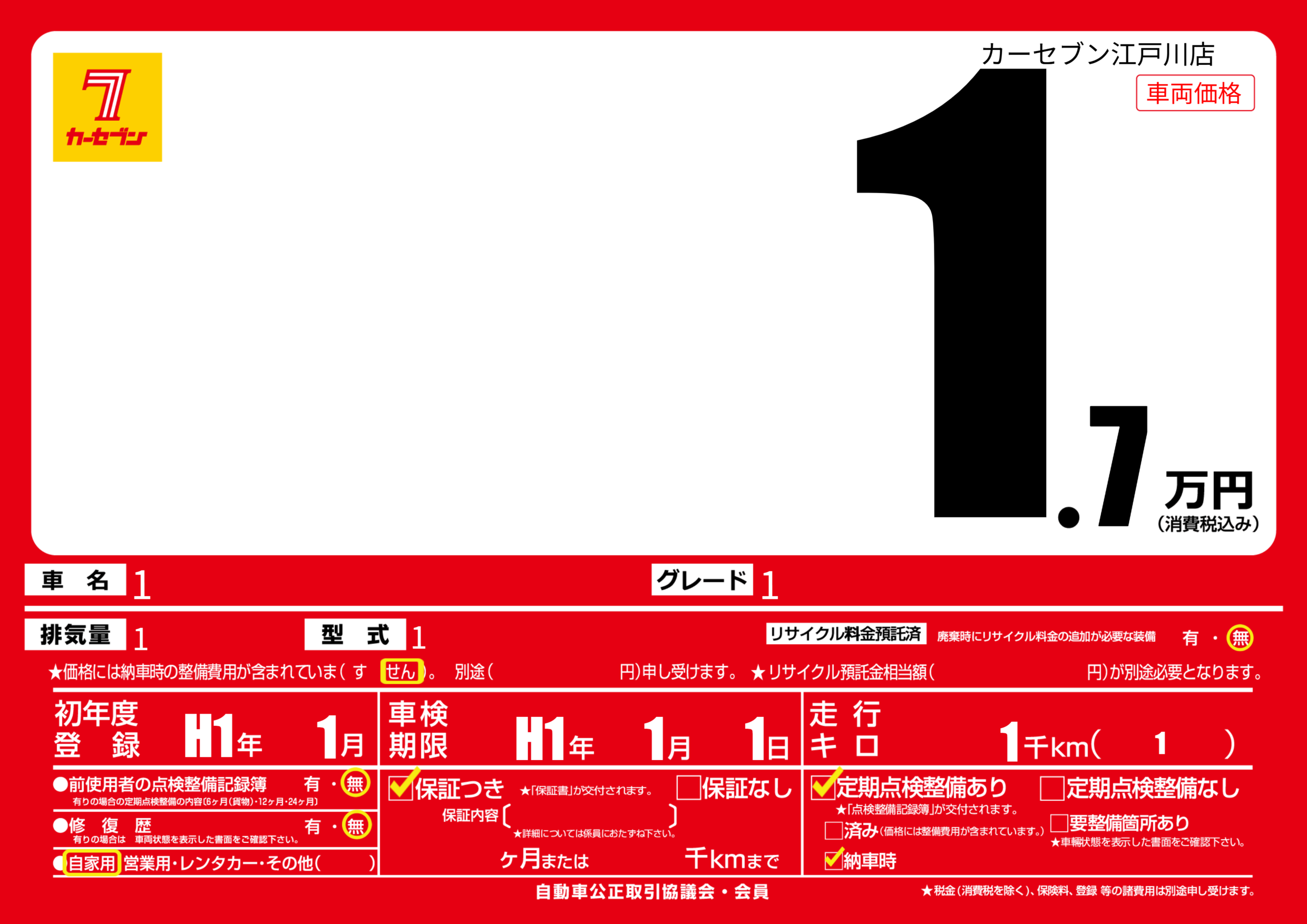 なし | 車検制限 | H1年1月1月 |