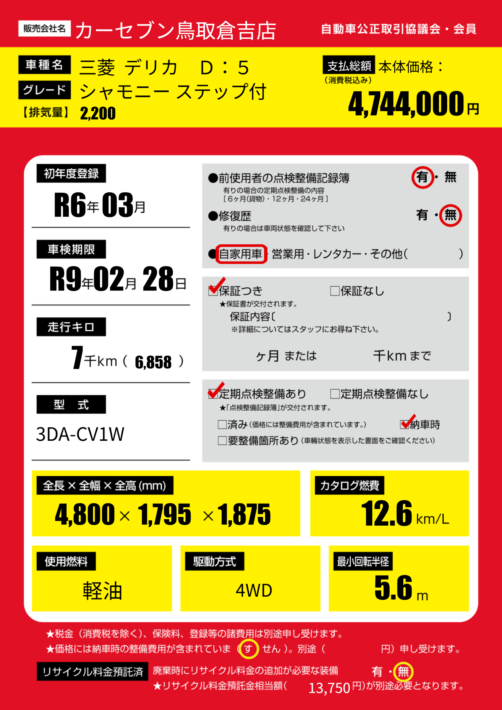 | 車検制限 | R9年 02月 28日 | ||