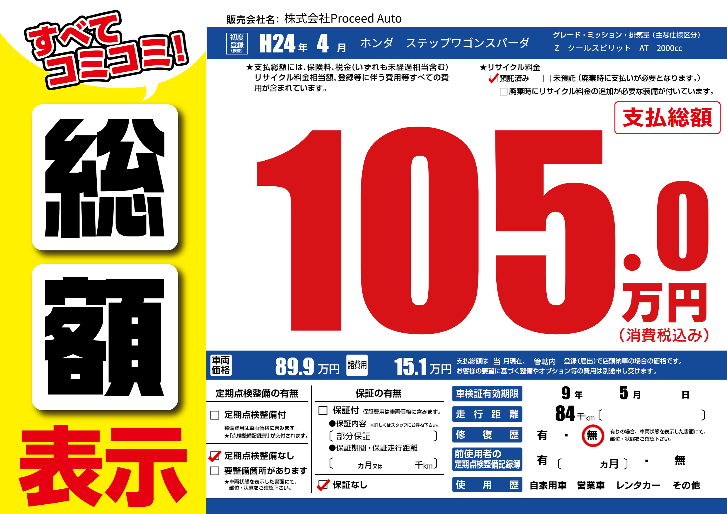| 走行キロ | 8.4万km | 初年度登録 | H24年4月 |