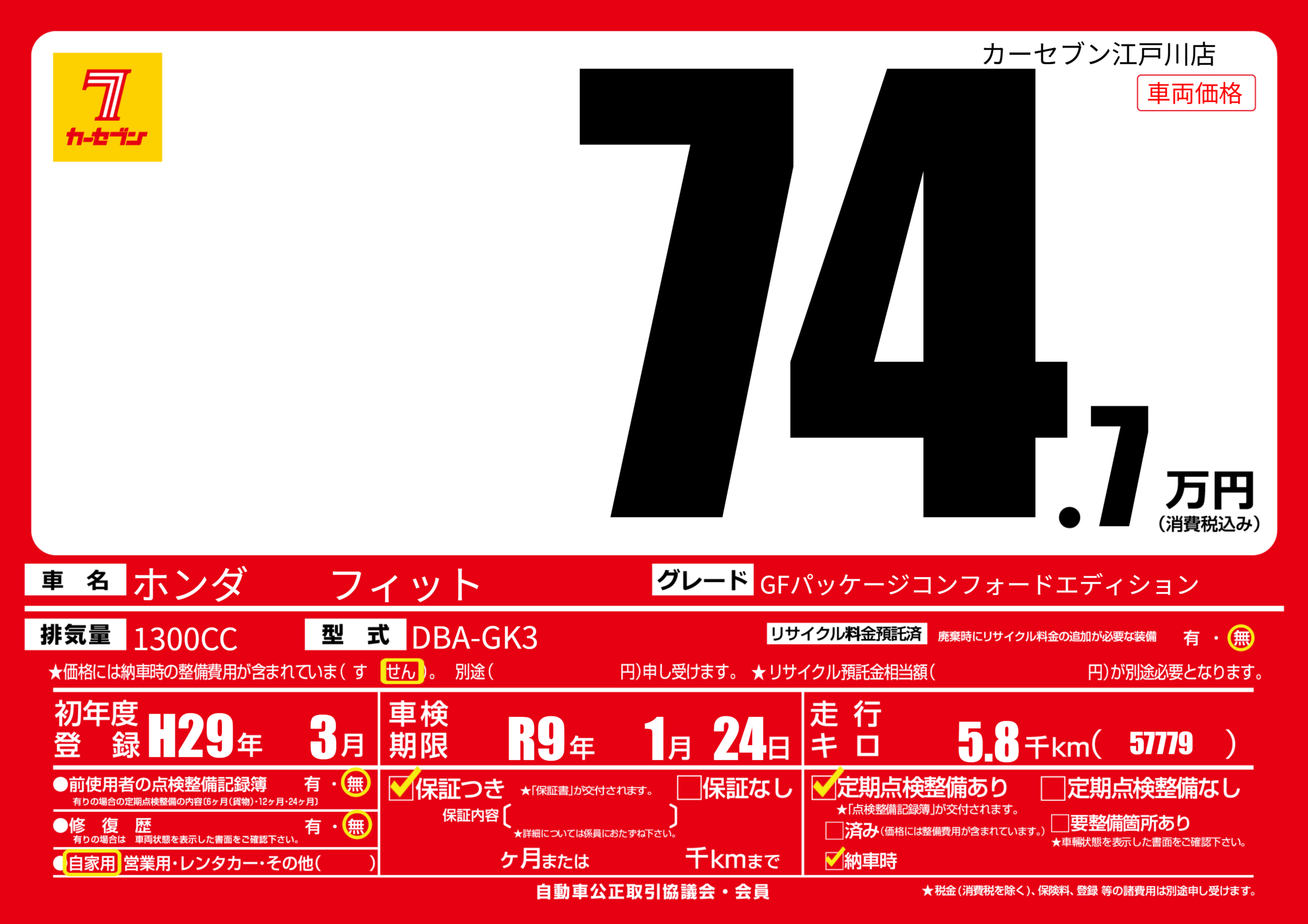 | 初年度登録 | H29年3月 | ||