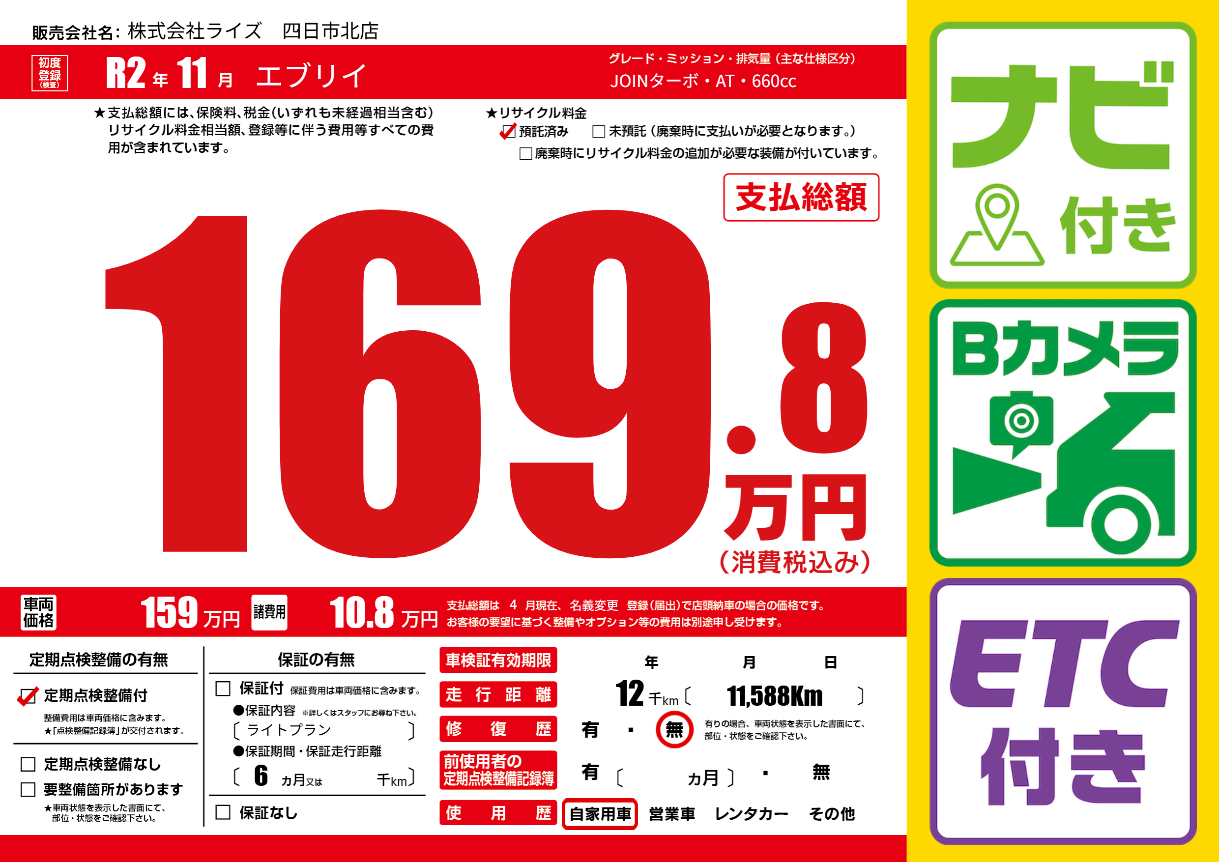 | 定期点検整備 | 定期点検整備あり | ||