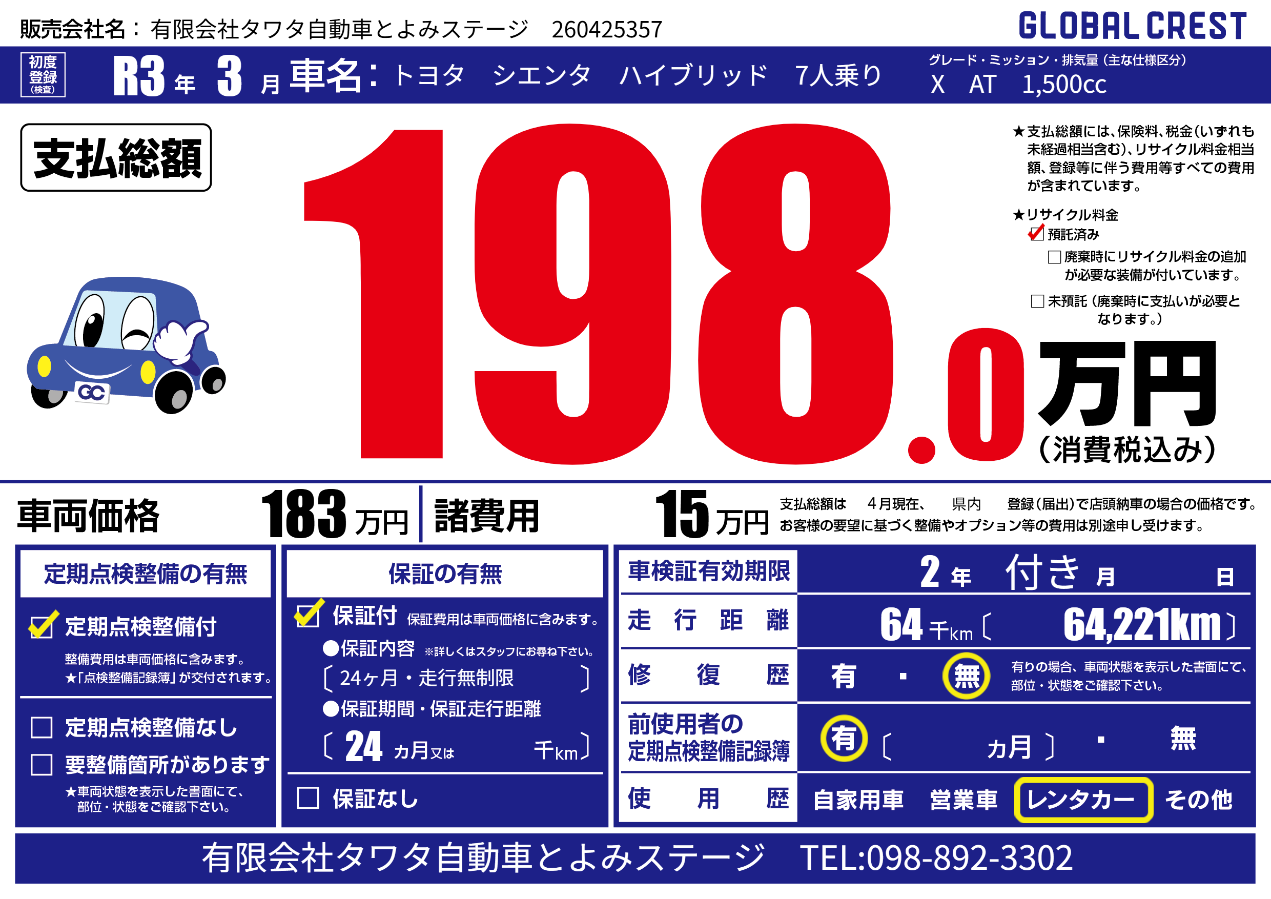 | メーカー | - | 種別 | レンタカー |