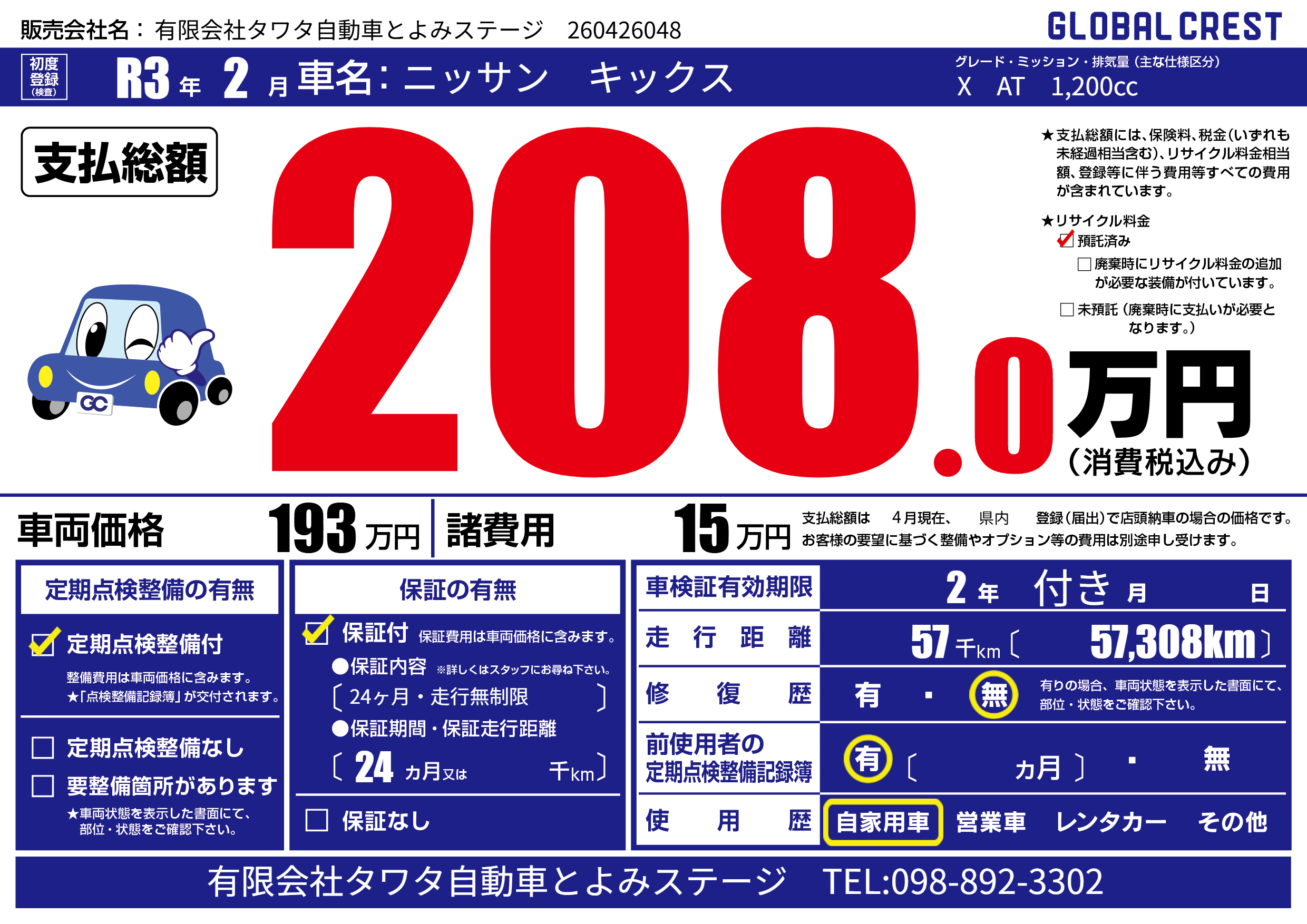 | 初年度登録 | R3年2月 | ||