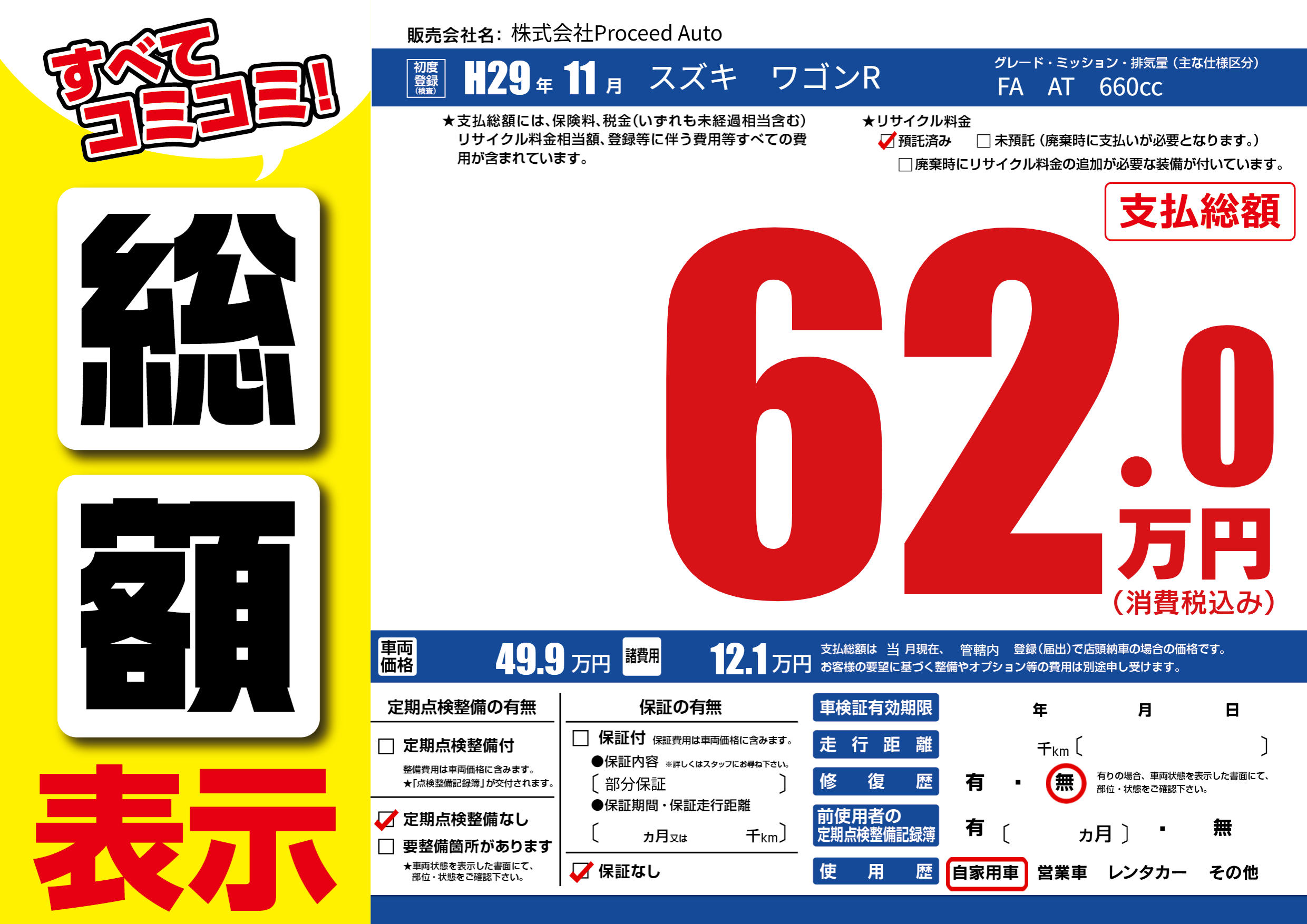 | 車検制限 | - 年 - 月 - 日 | ||