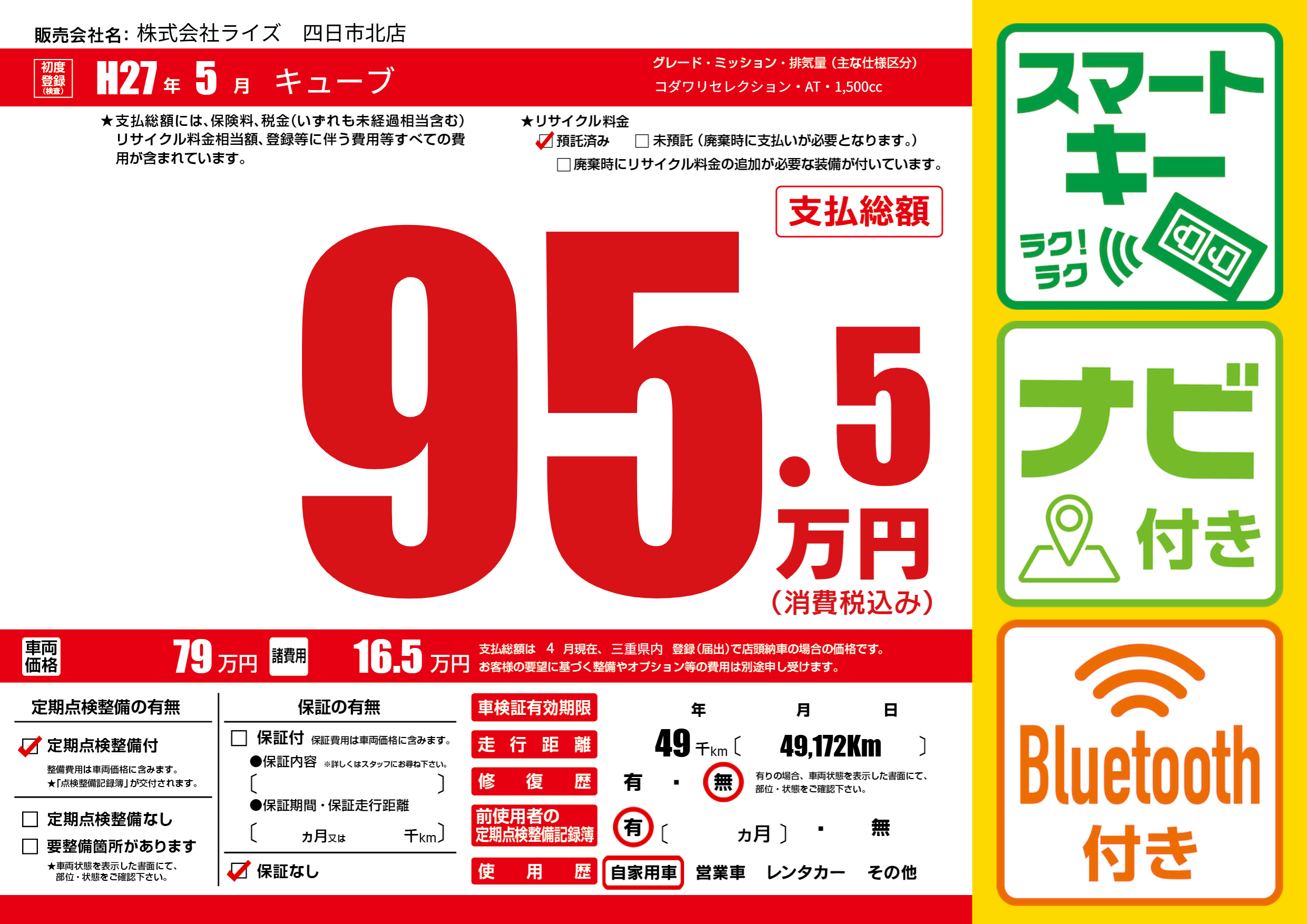 | 走行キロ | 4.9万km | ||