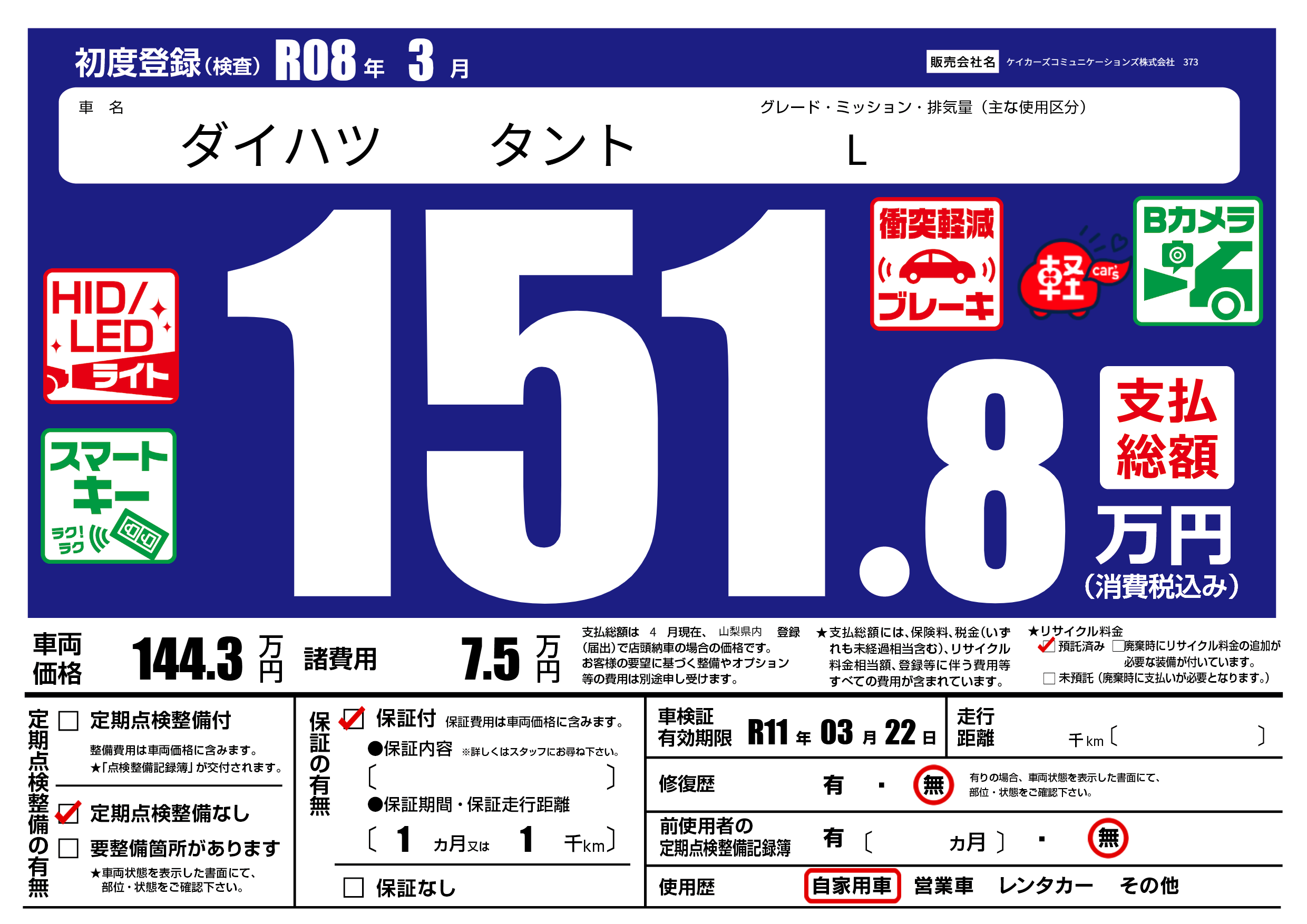 なし | 車検制限 | R11年03月22月 |