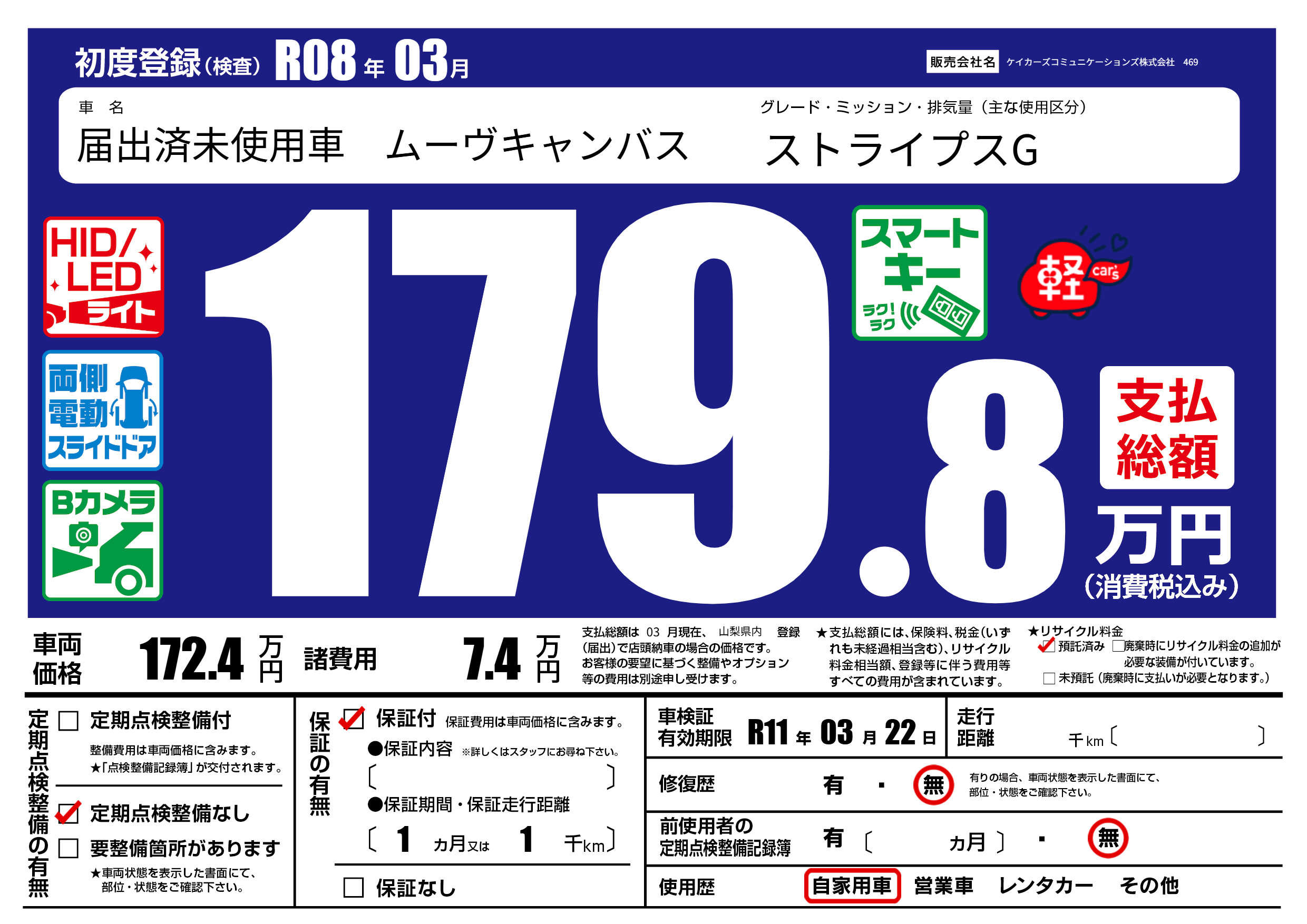 なし | 車検制限 | R11年03月22月 |