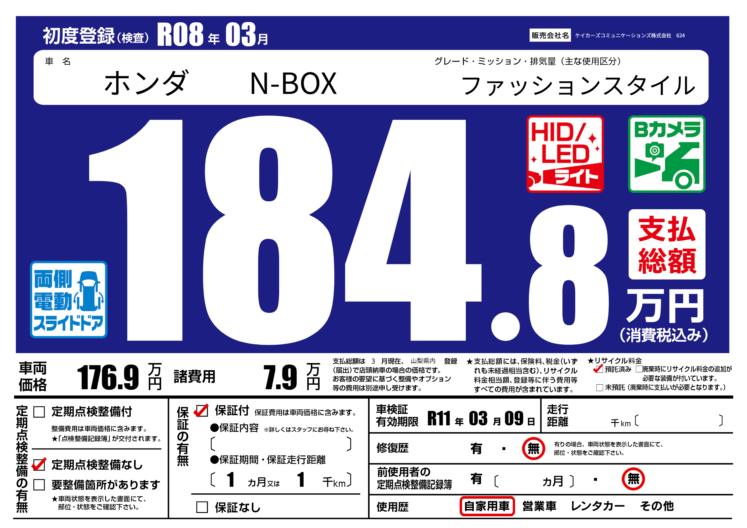 | 走行キロ | - | 初年度登録 | R08年03月 |