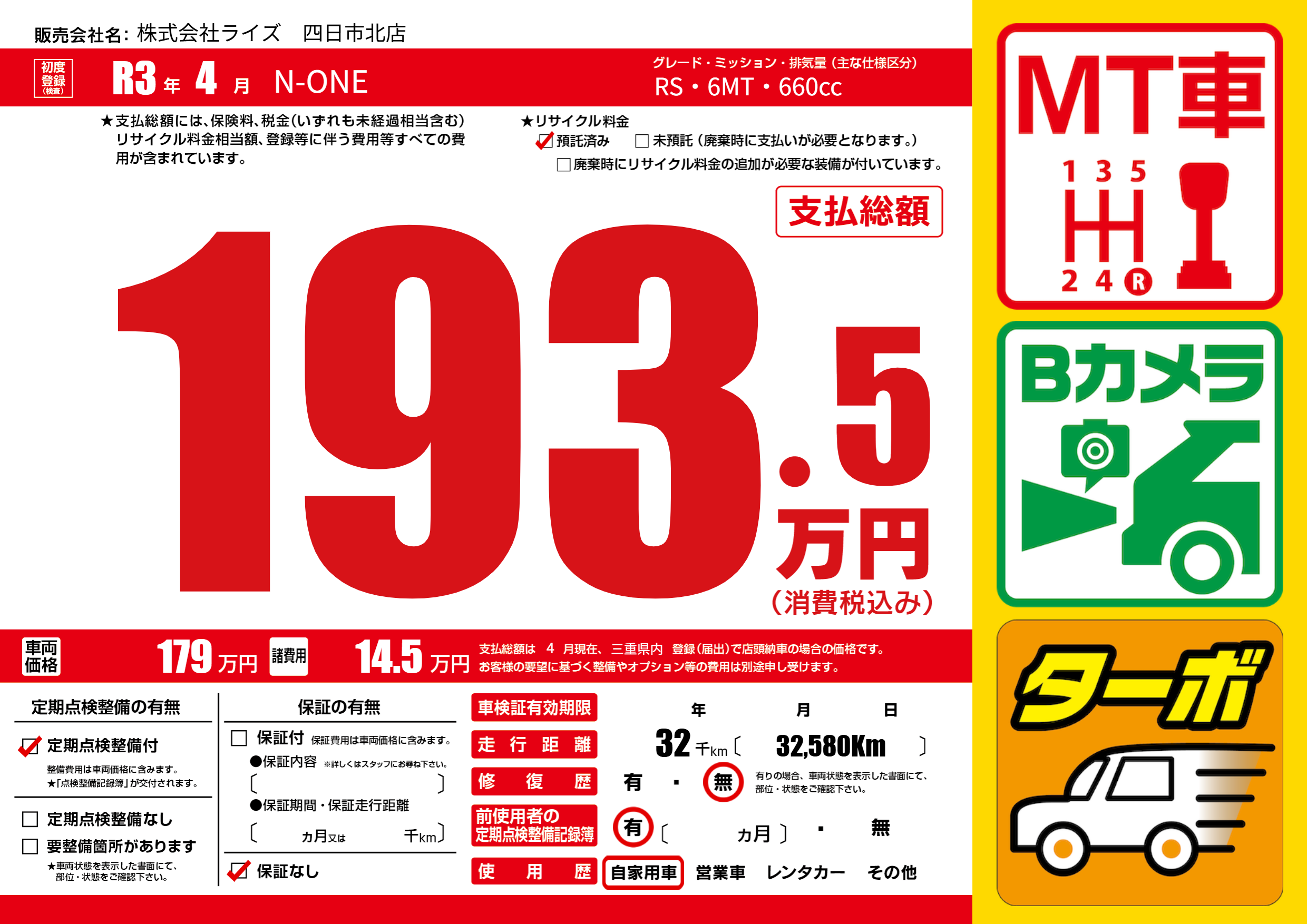 初年度登録 R3年4月