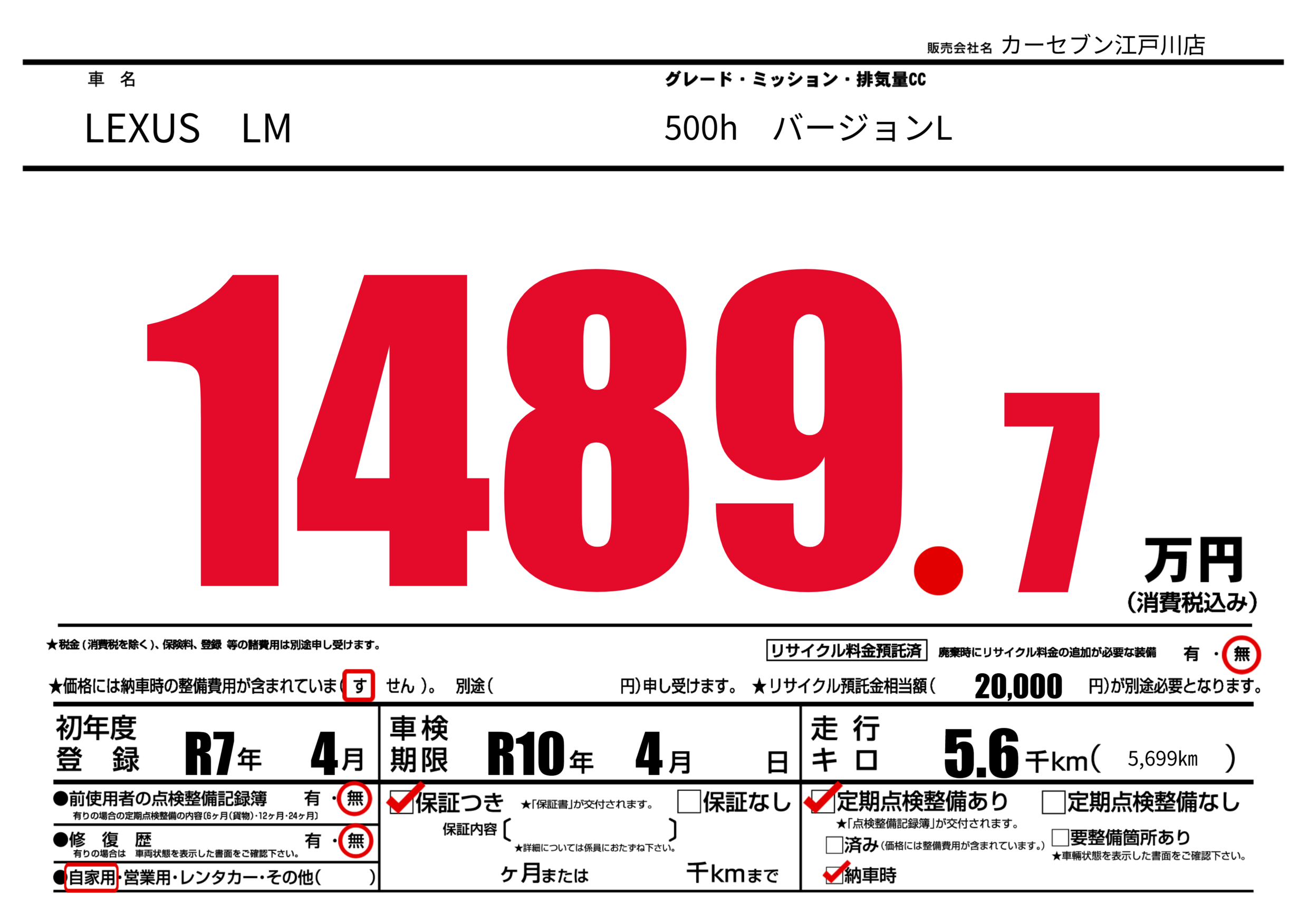 | リサイクル料金 預託済 |