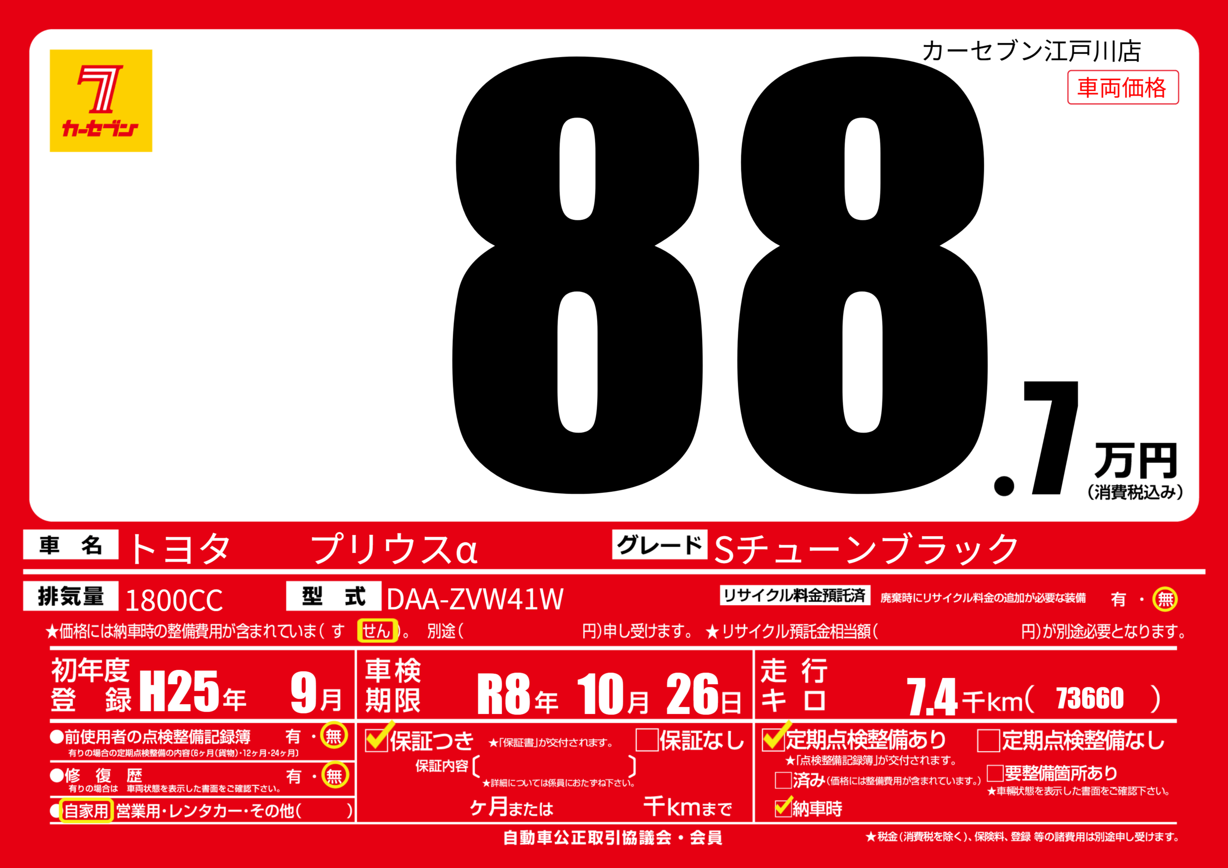 | 車名 | トヨタ プリウスα | グレード ミッション 排気量 |