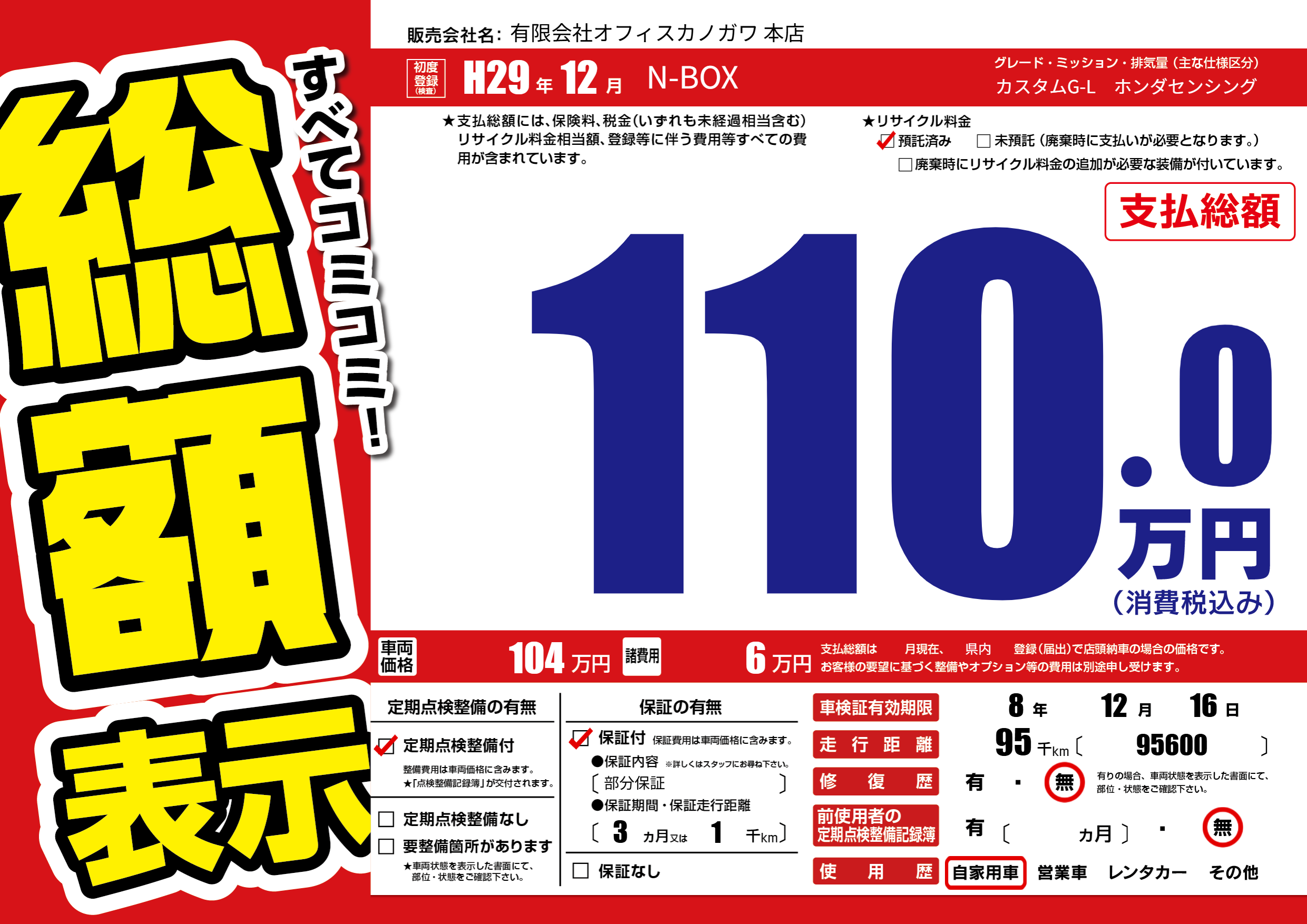 | 車名 | N-BOX | グレード ミッション 排気量 |