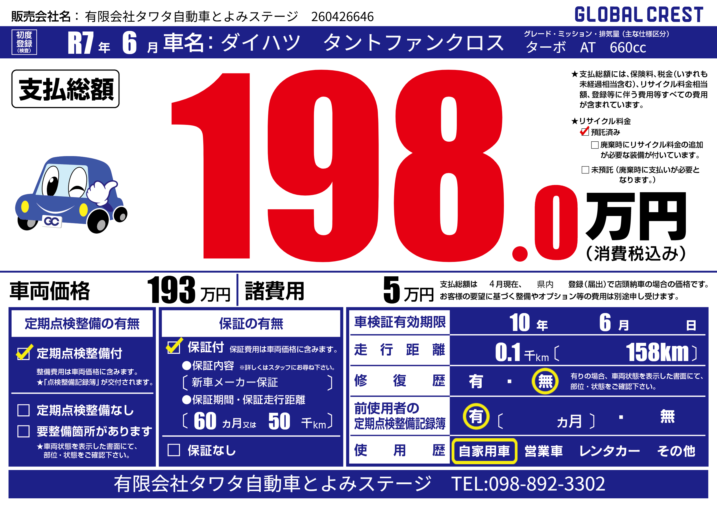 | 車検制限 | 10年 6月 - 日 | ||