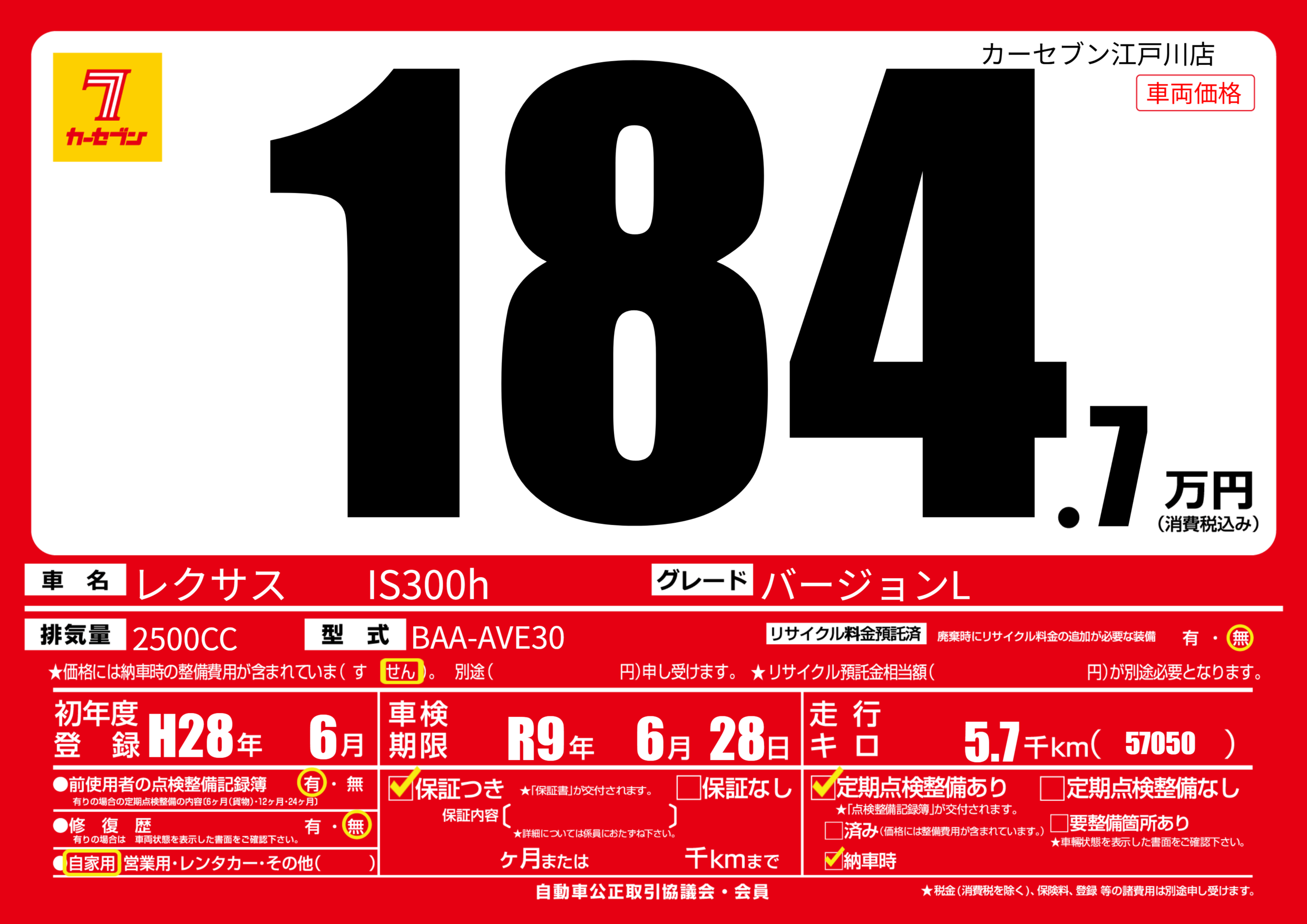 | 車検制限 | R9年 6月 28日 | ||