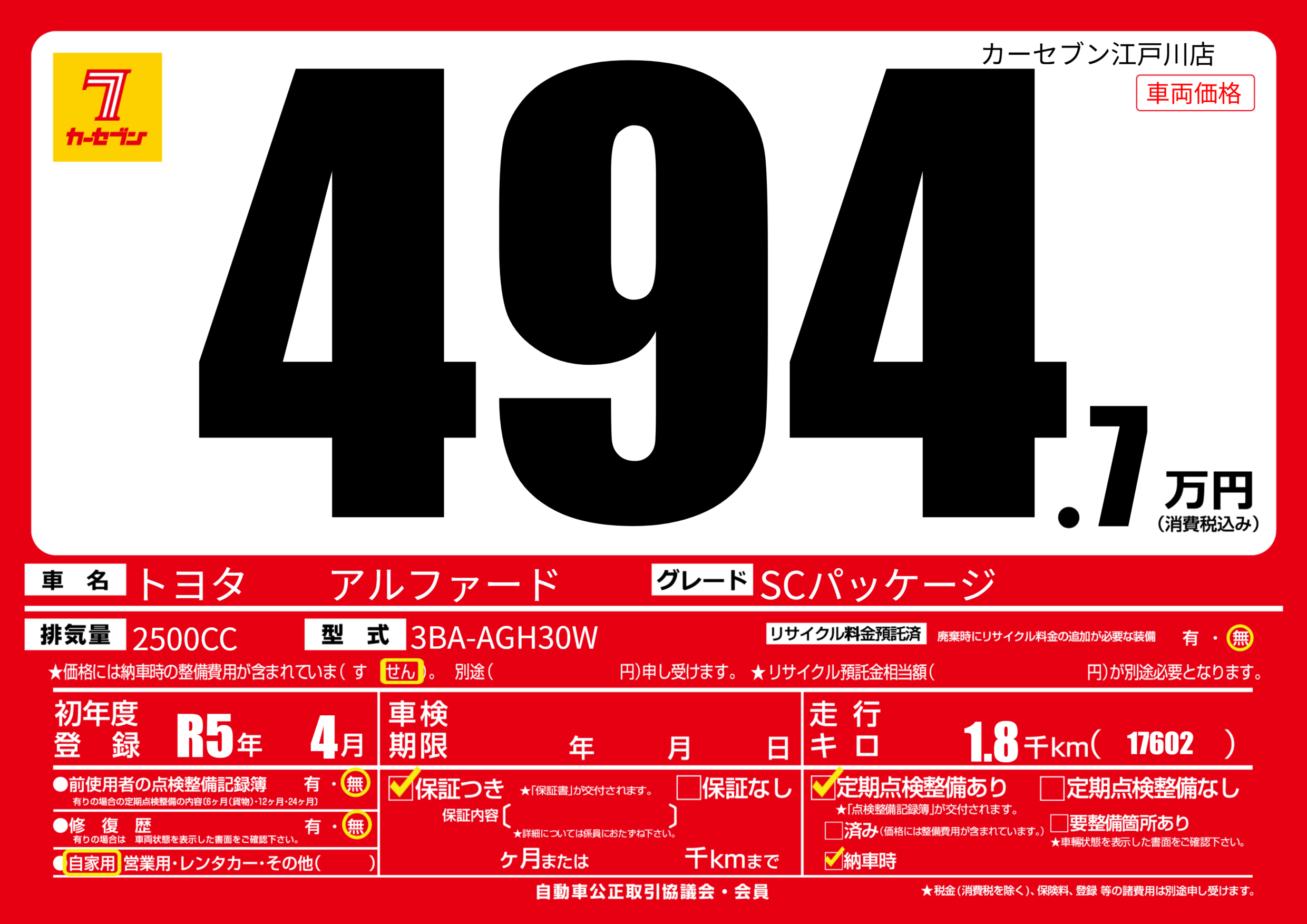 | 初年度登録 | R5年4月 | ||
