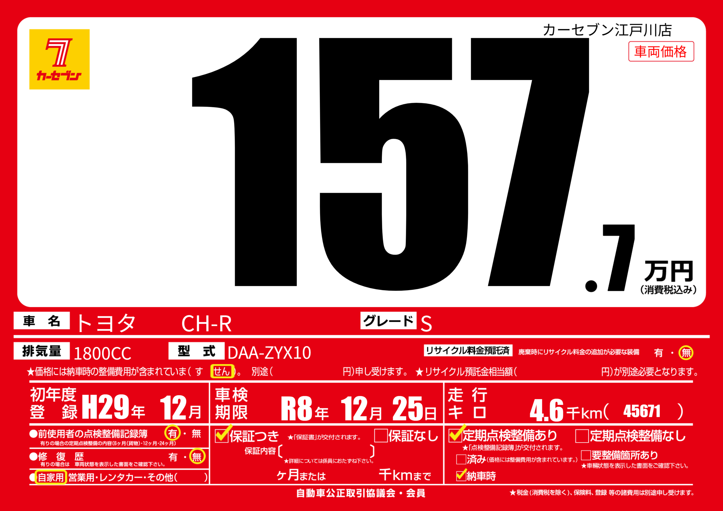 | 車検制限 | R8年 12月 25日 | ||
