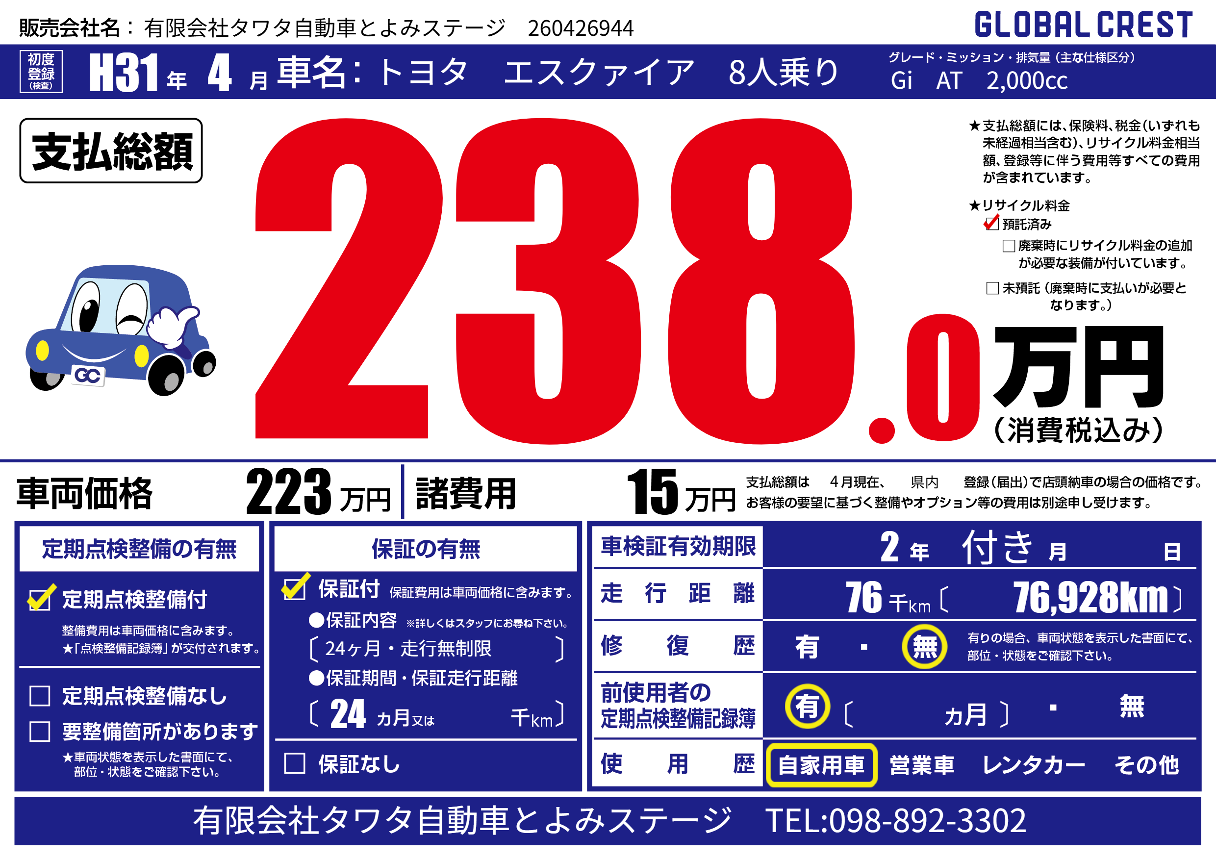 | 走行キロ | 7.6万km | ||