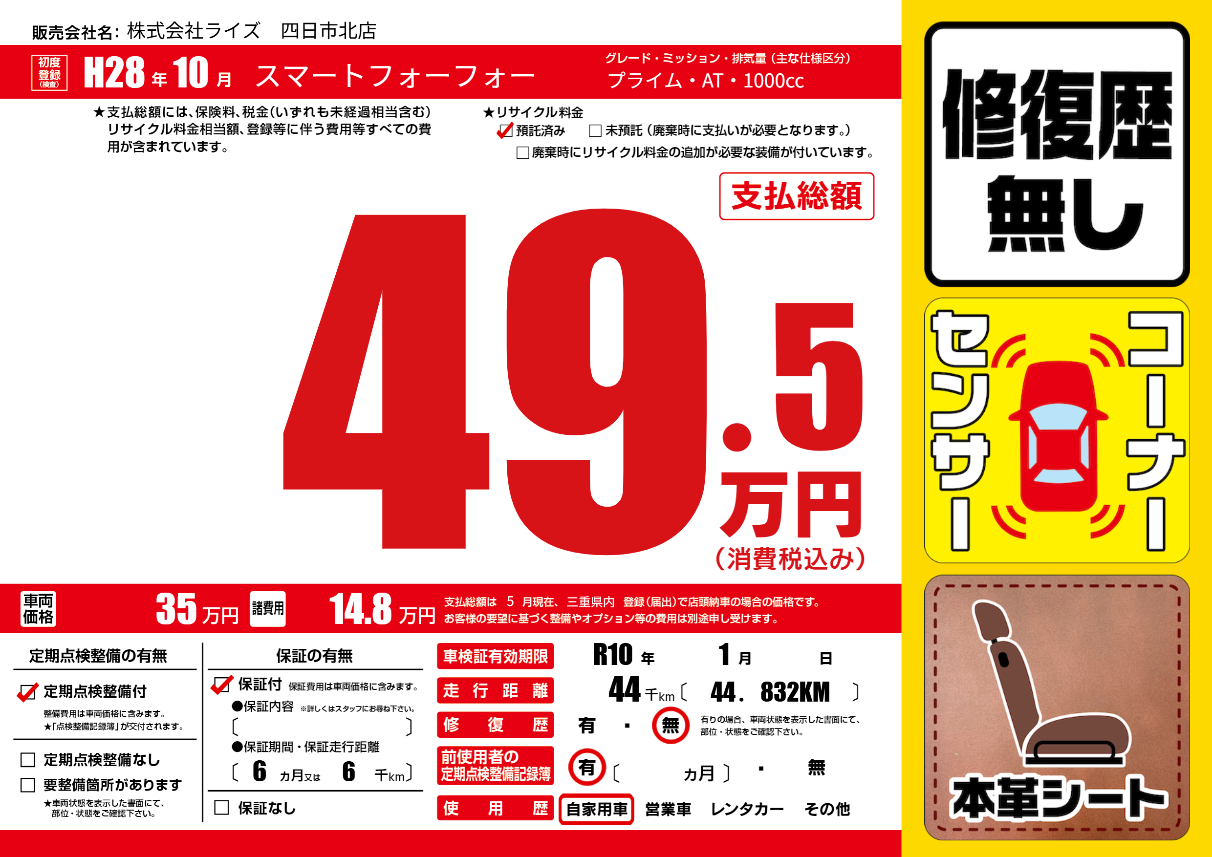| 車検制限 | R10年 1月 - 日 | ||