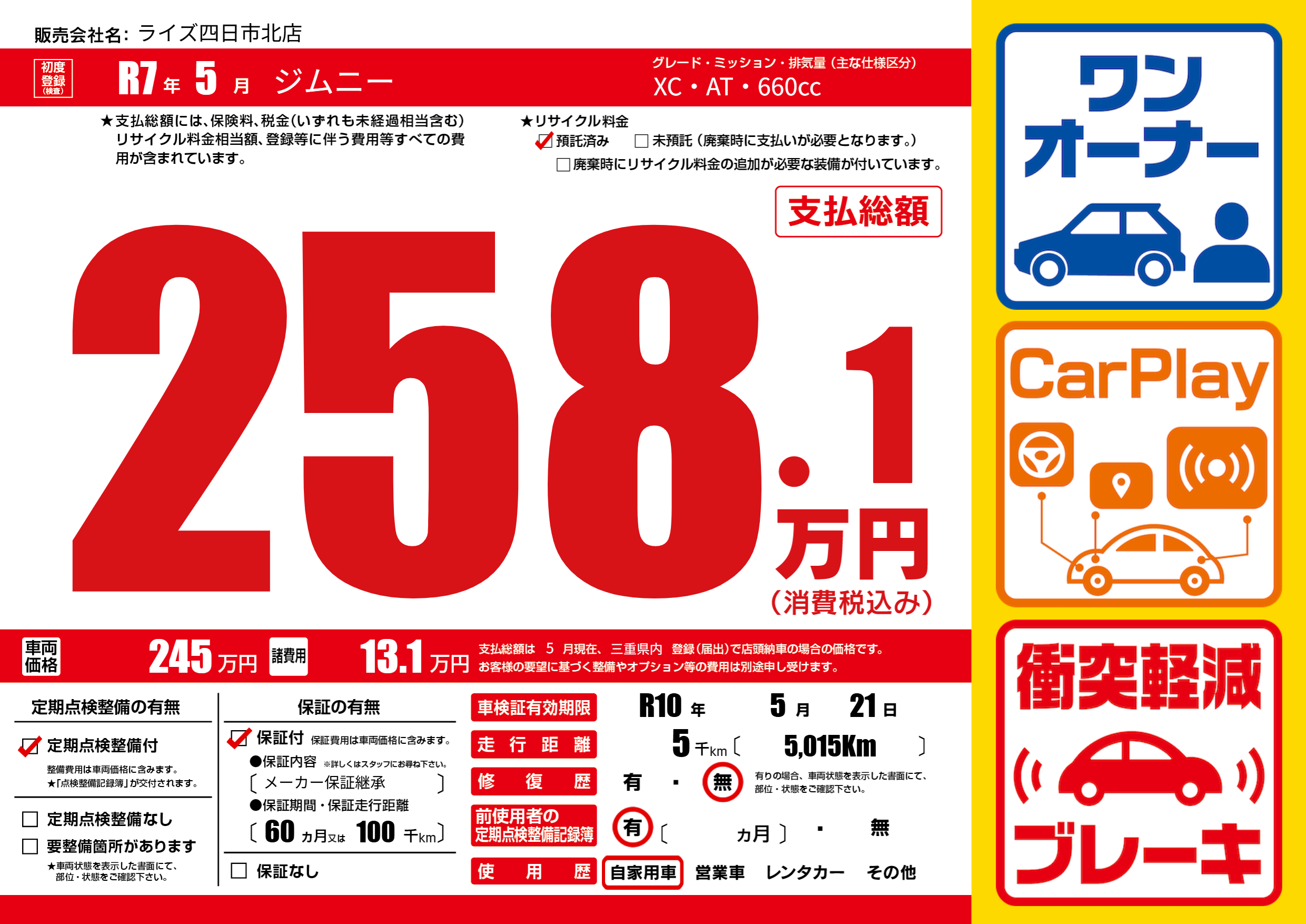 なし | 車検制限 | R10年5月21月 |