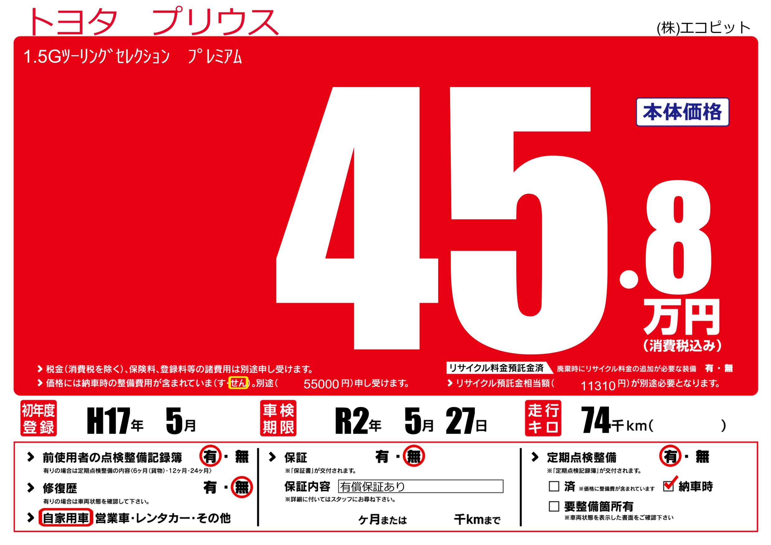 株式会社エコピットの展示車をすべて見る