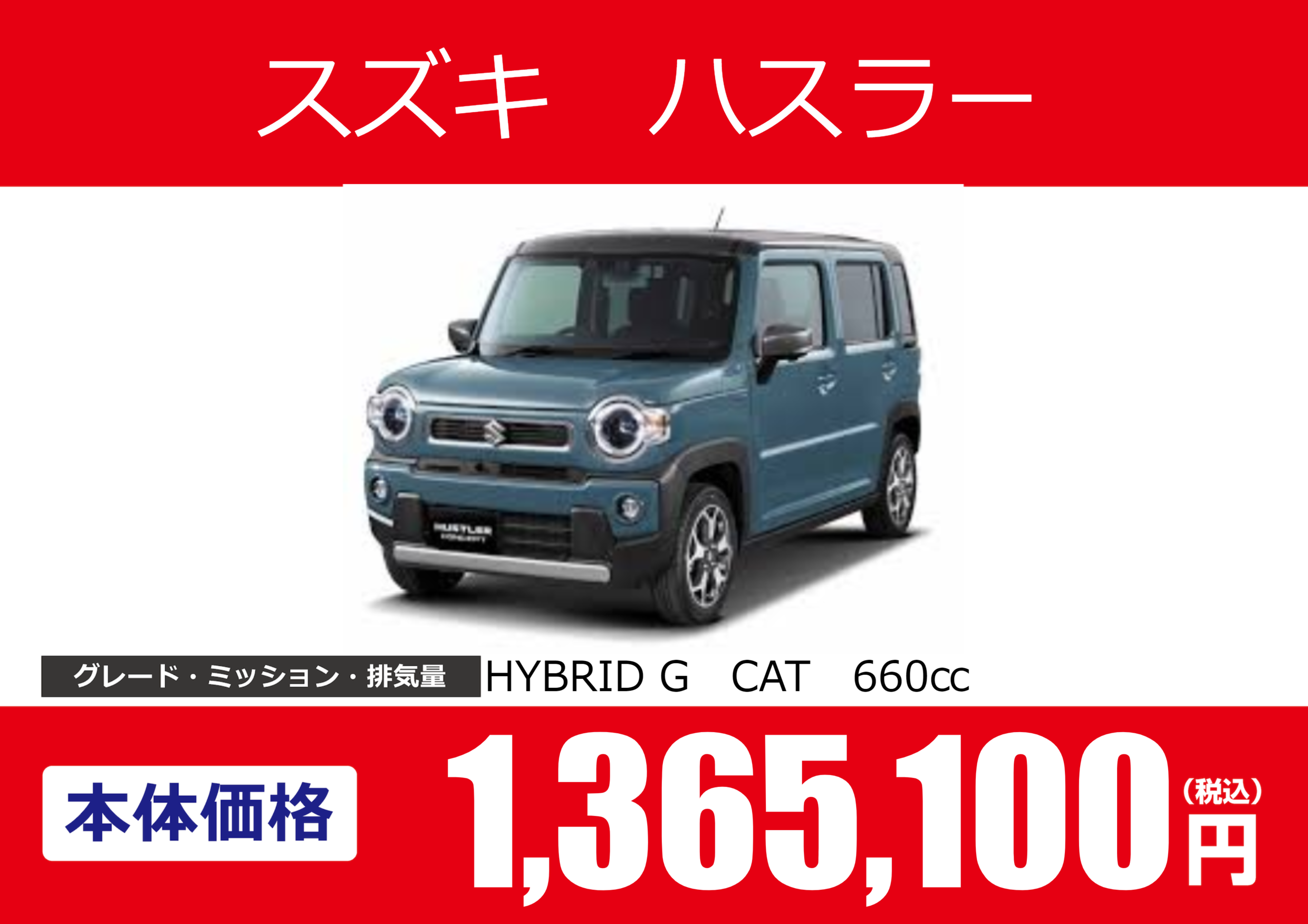 | 車名 | スズキ ハスラー | グレード ミッション 排気量 |