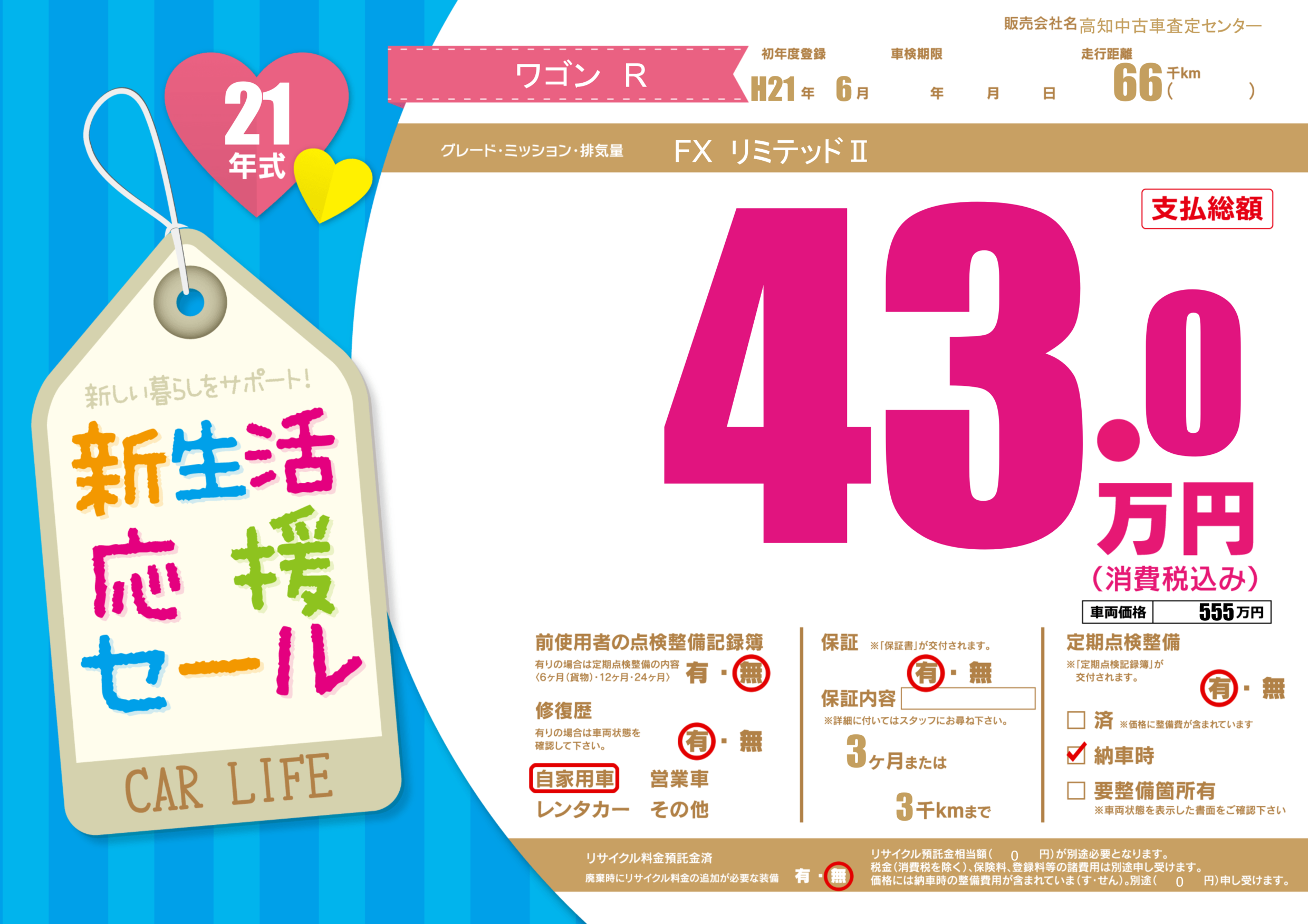 保証付き 保証内容(---) 3ヶ月または(3)千kmまで |