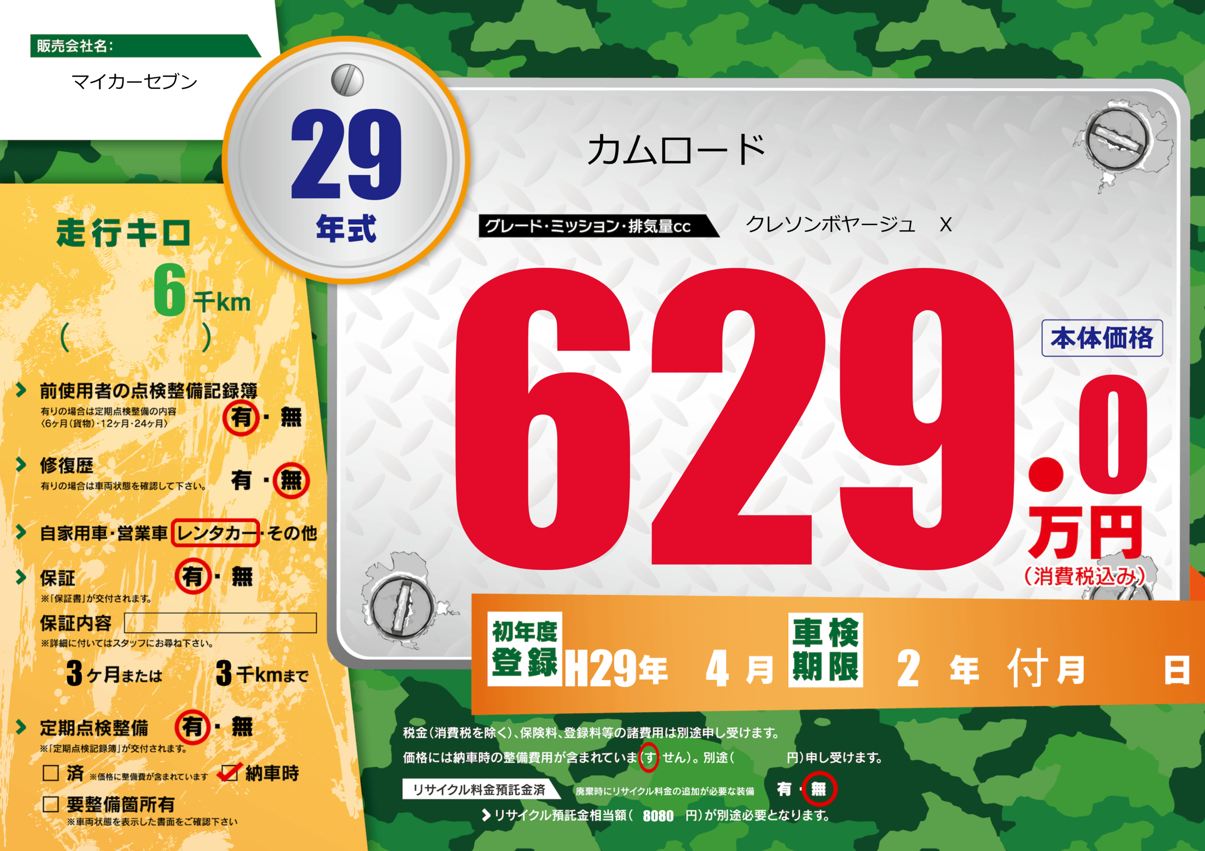 | 車名 | カムロード | グレード ミッション 排気量 |