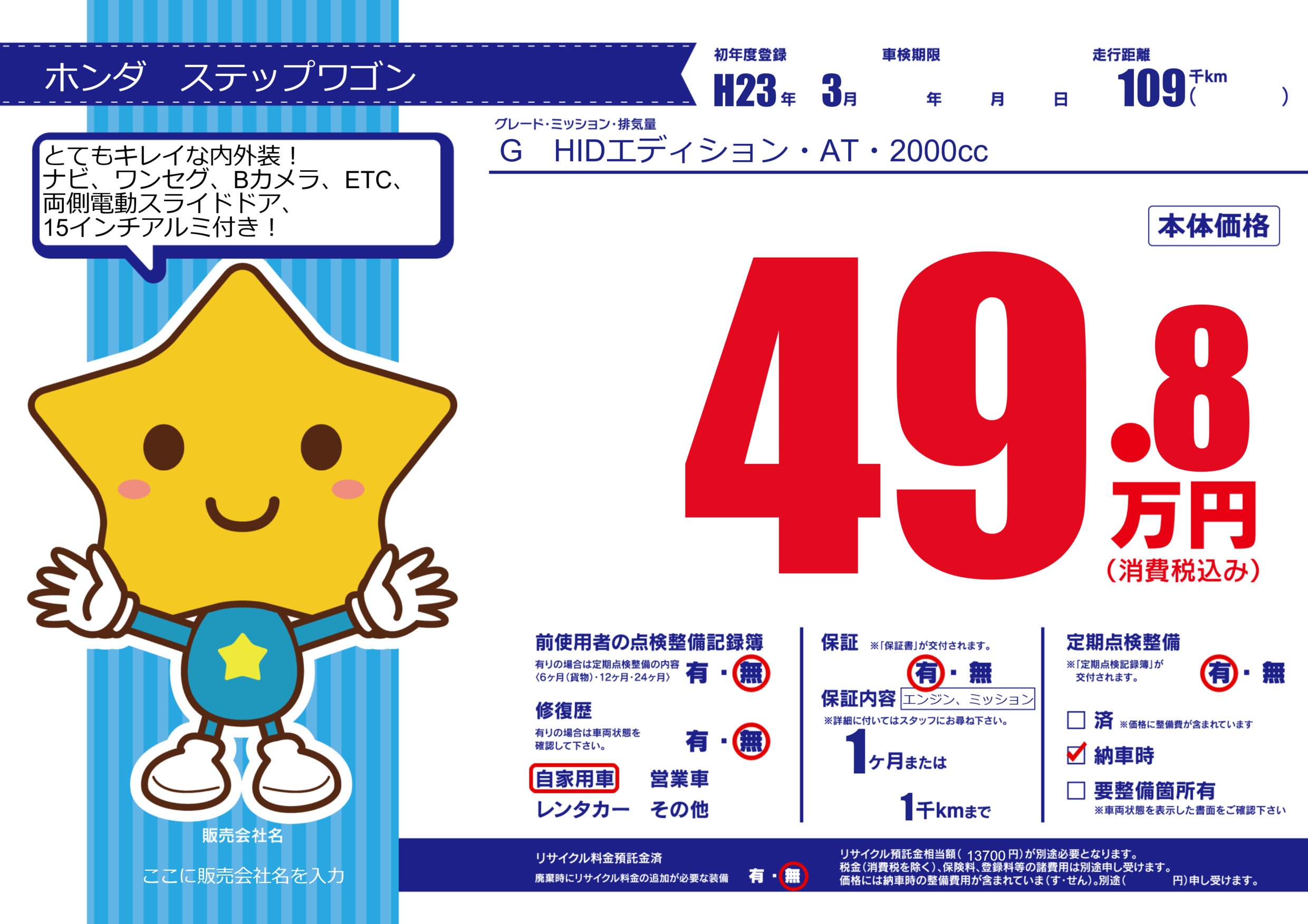 | 定期点検整備 | 定期点検整備あり 納車時あり | ||