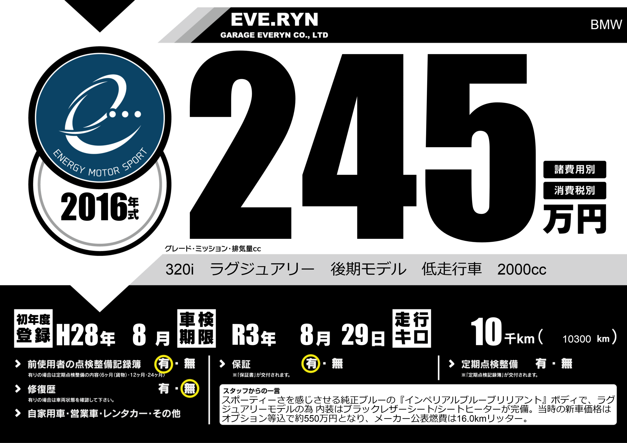 320i ラグジュアリー 後期モデル 低走行車 2000cc |