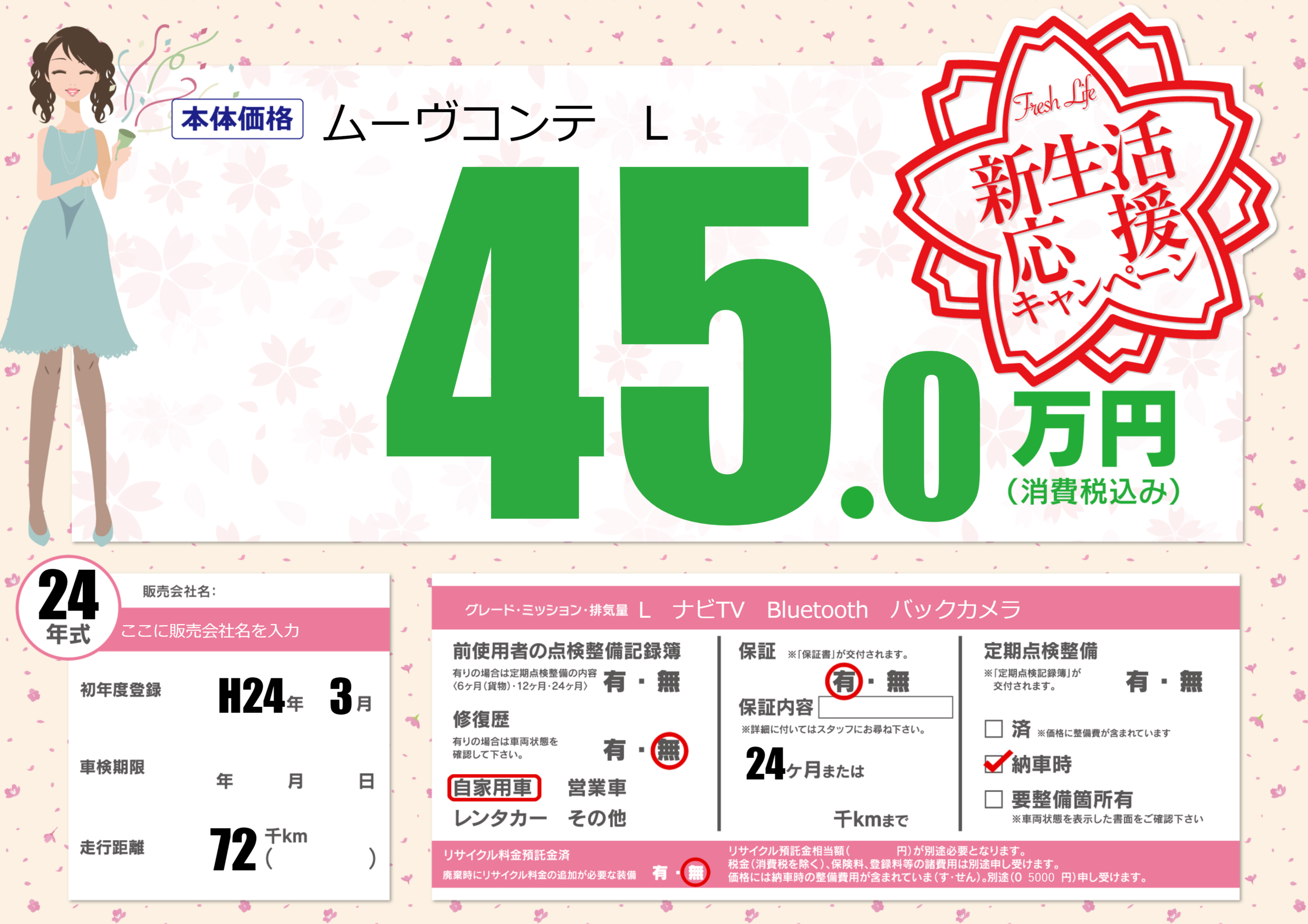 | 定期点検整備 | 納車時あり | ||