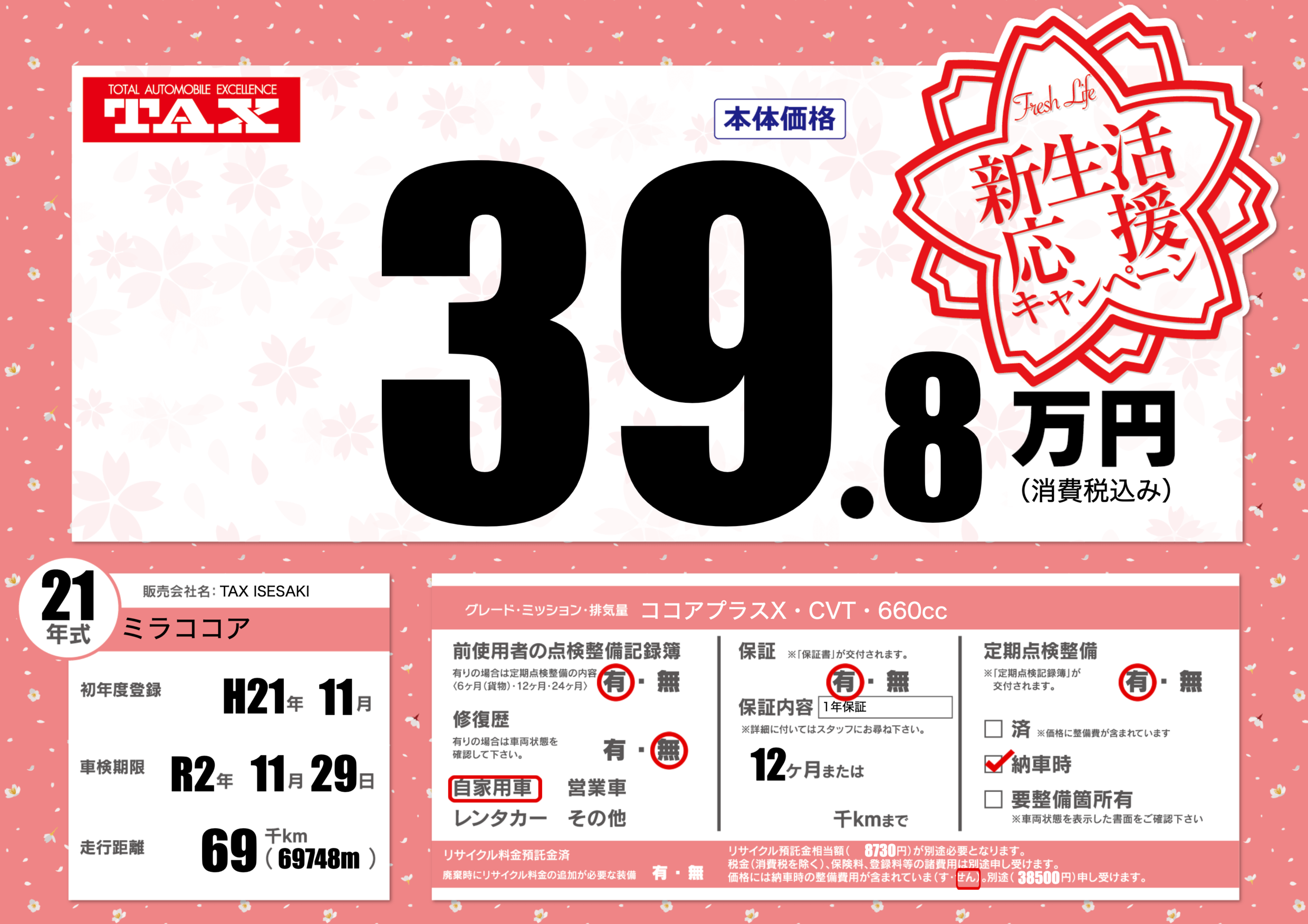 | 車名 | ミラココア | グレード ミッション 排気量 |