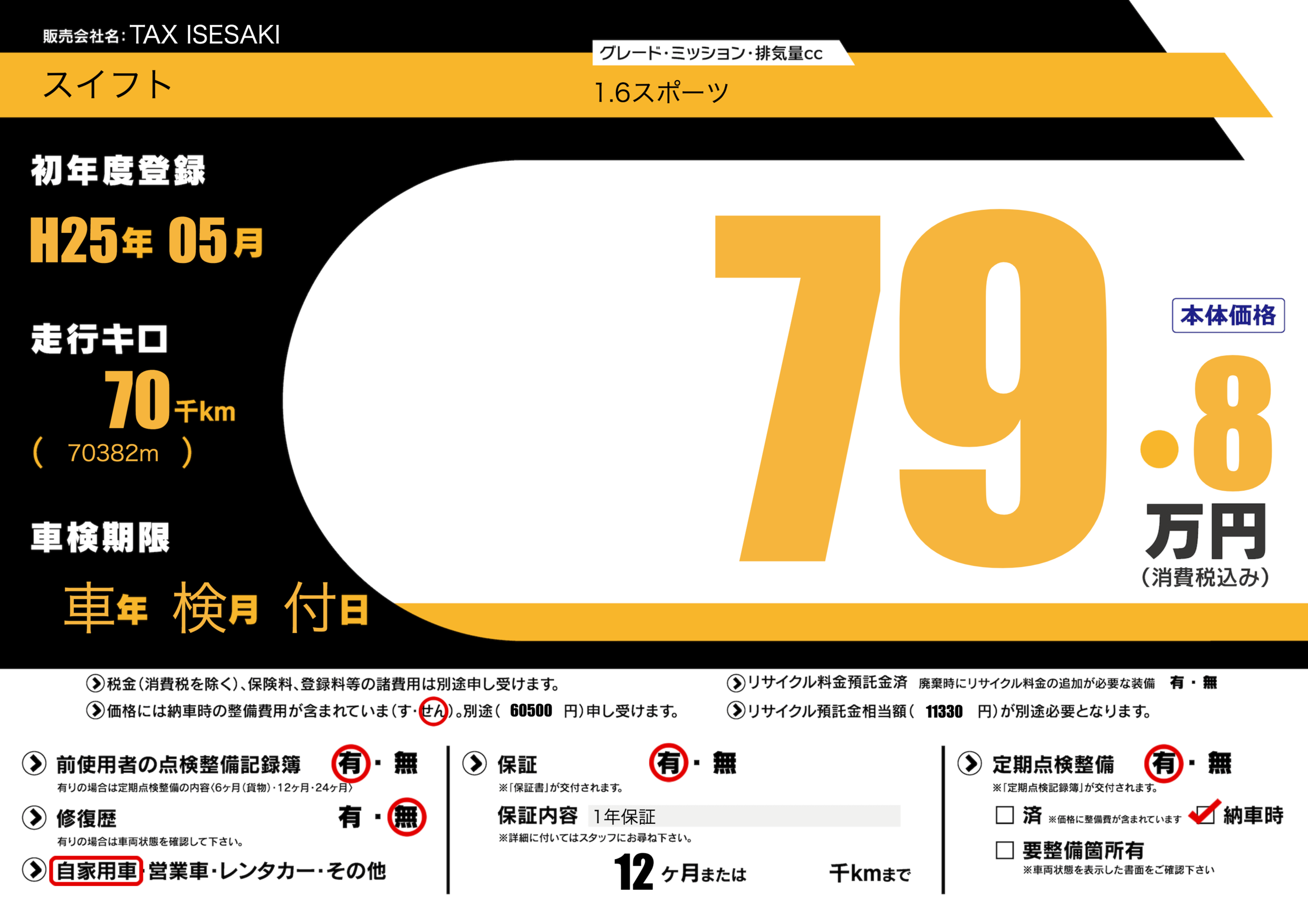 定期点検整備 定期点検整備あり 納車時あり
