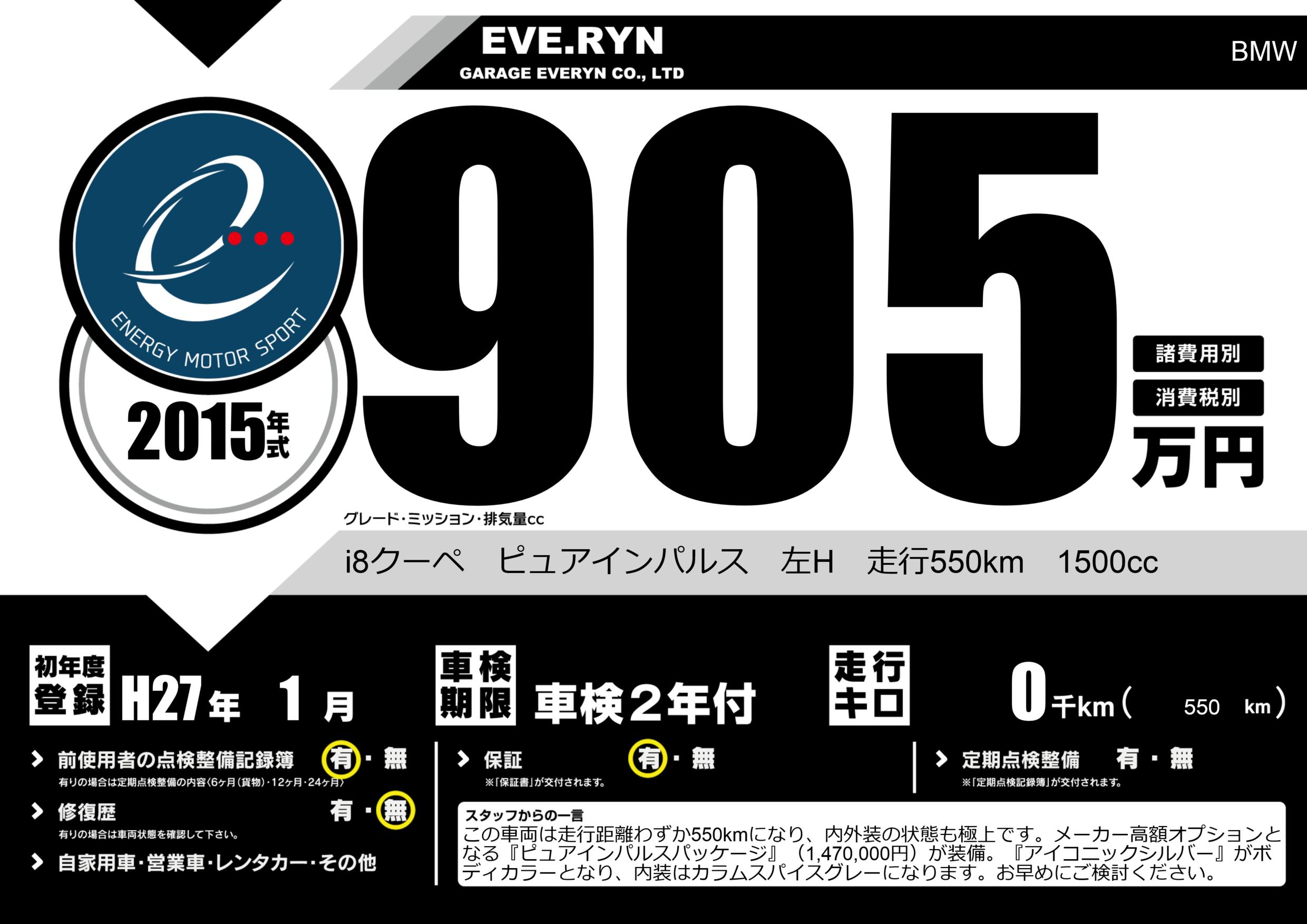 i8クーペ ピュアインパルス 左H 走行550km 1500cc |