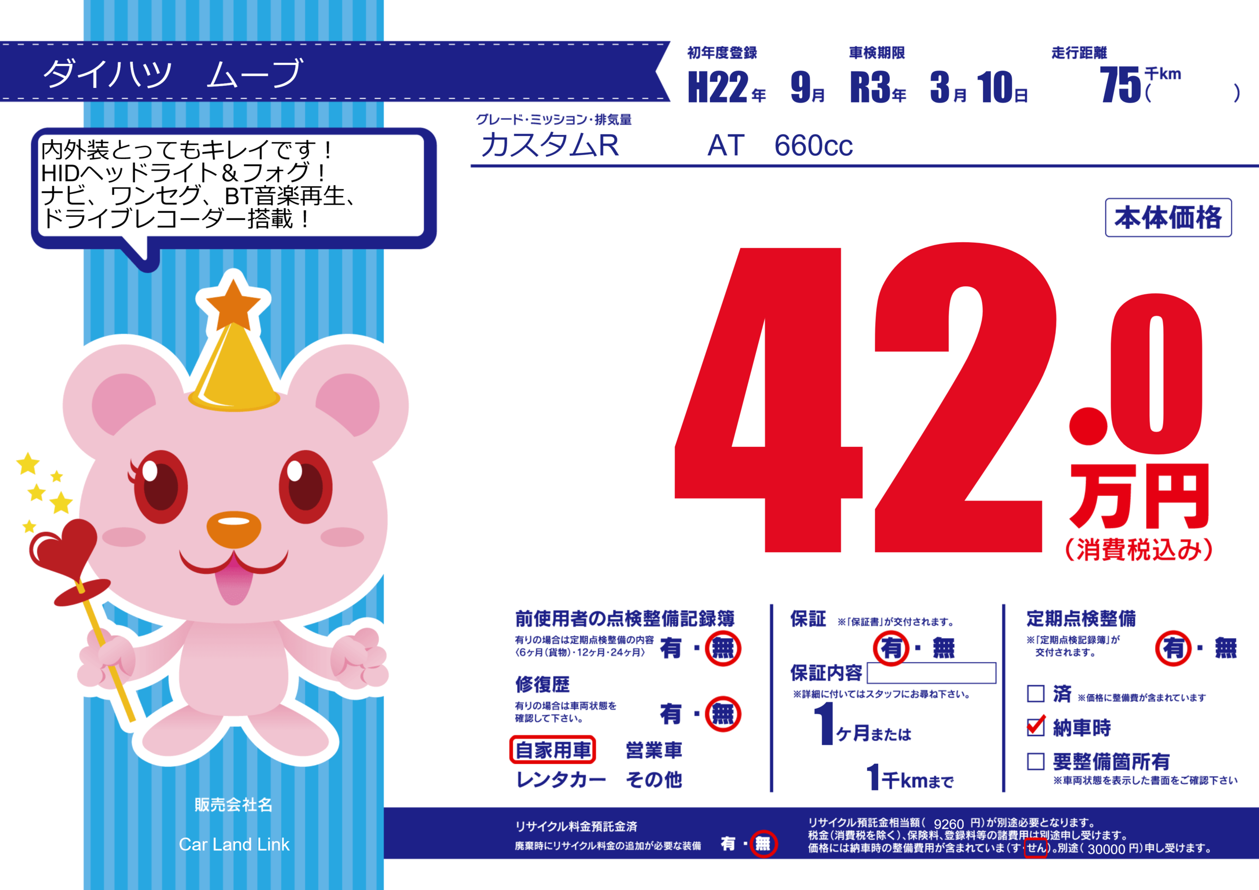 | 車検制限 | R3年 3月 10日 | ||