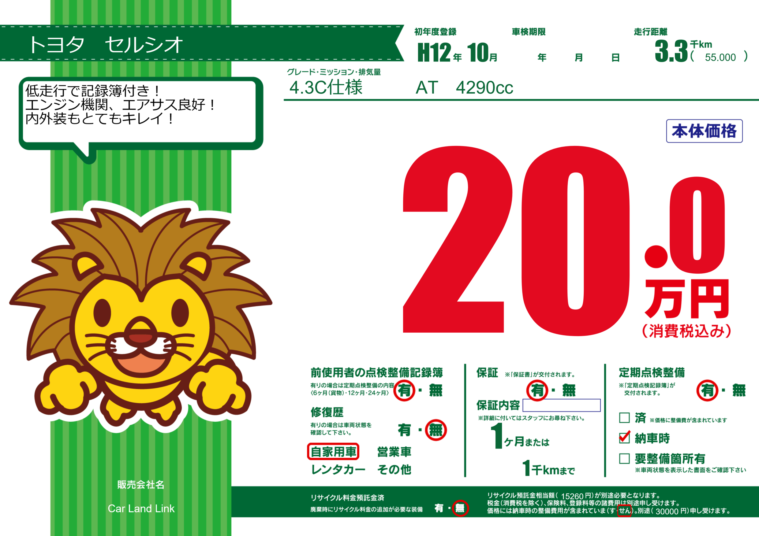 | 車名 | トヨタ セルシオ | グレード ミッション 排気量 |